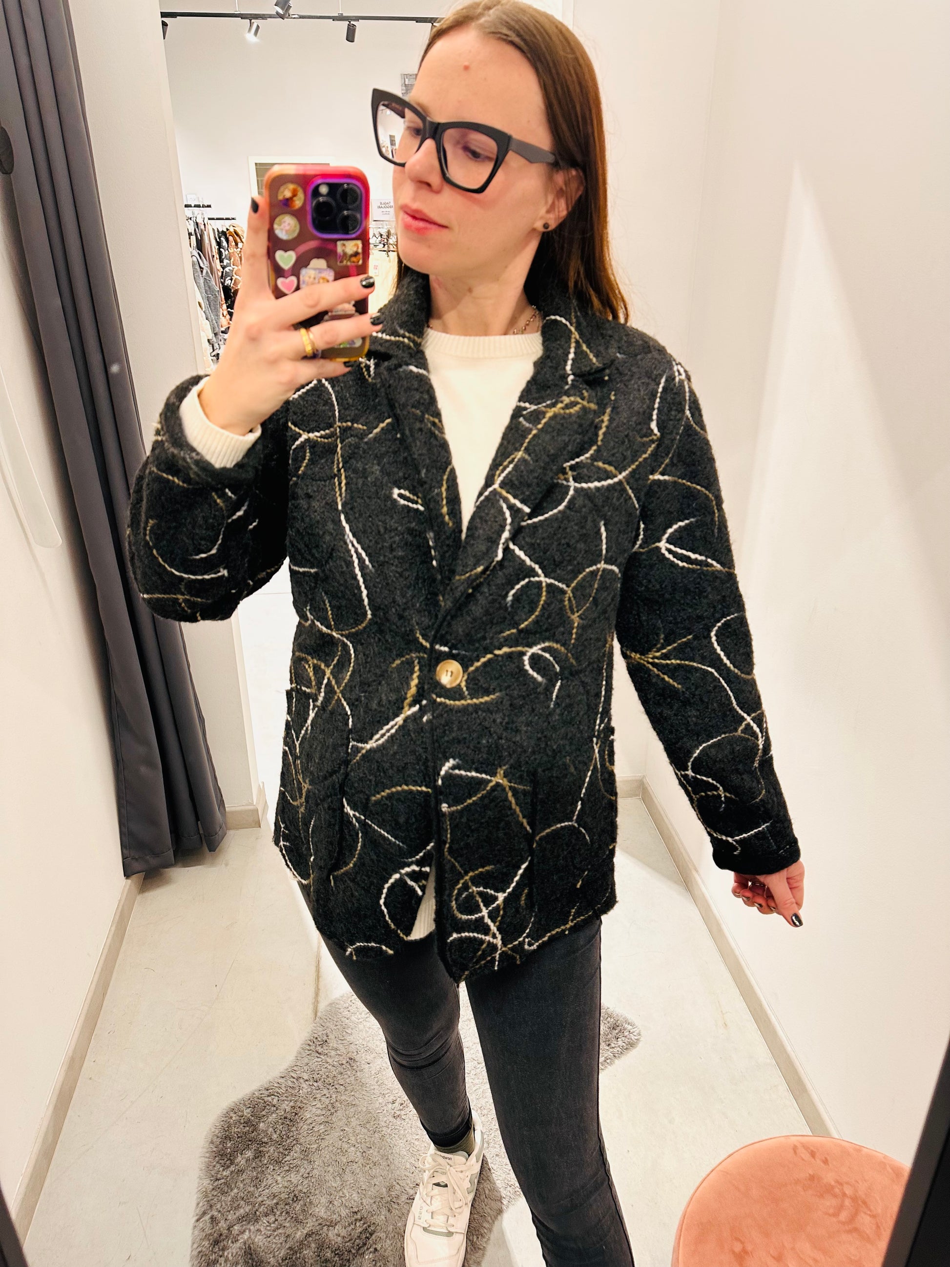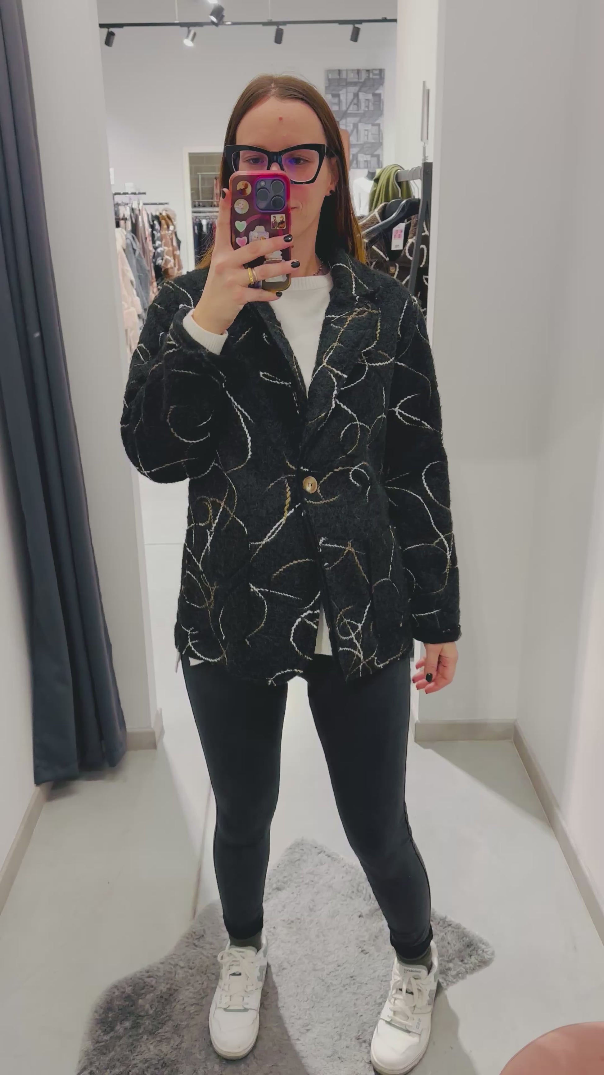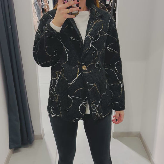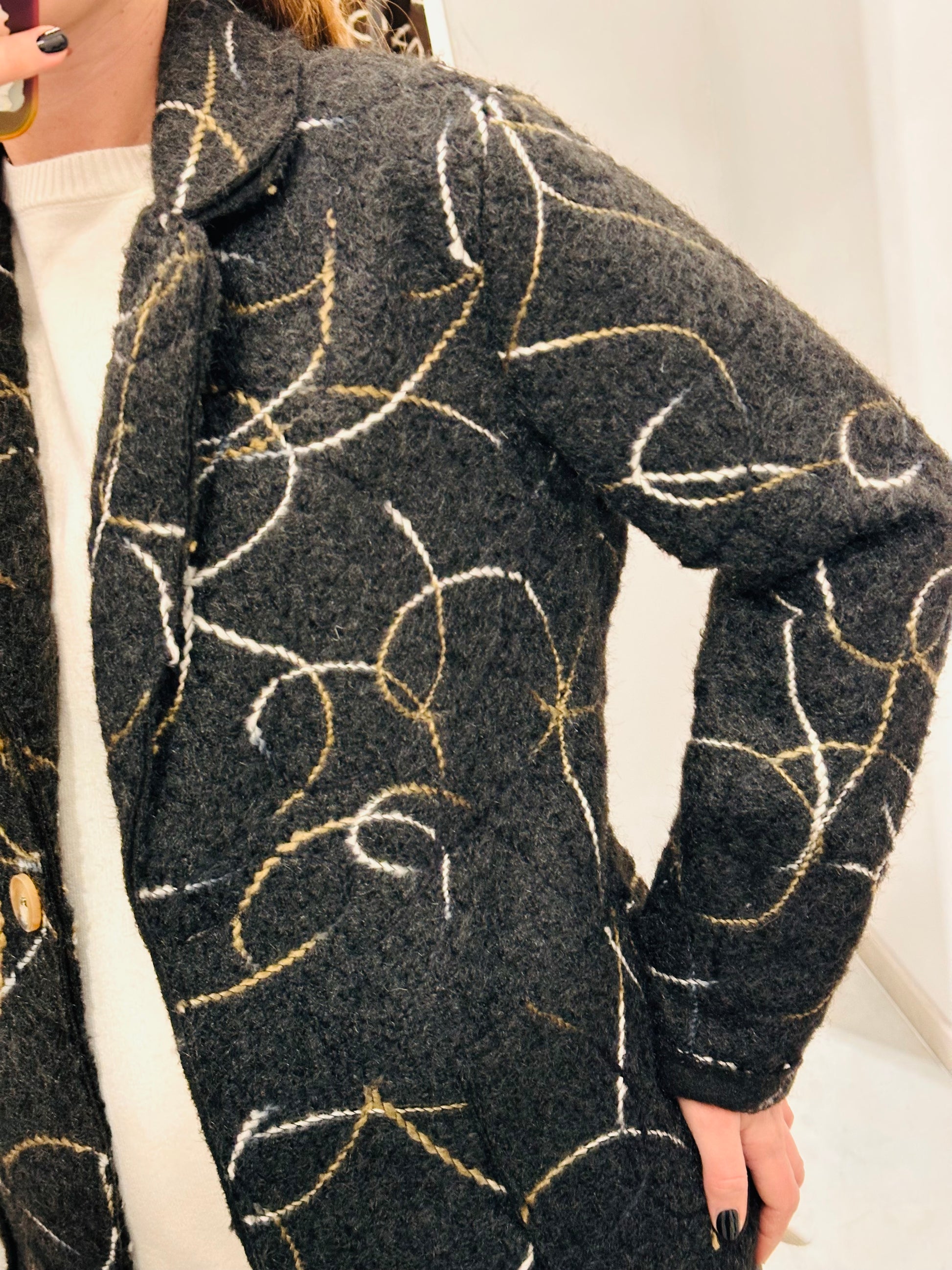 Cappottino a giacca in simil lana cotta, chiusura con bottone. Vestibilità regolare