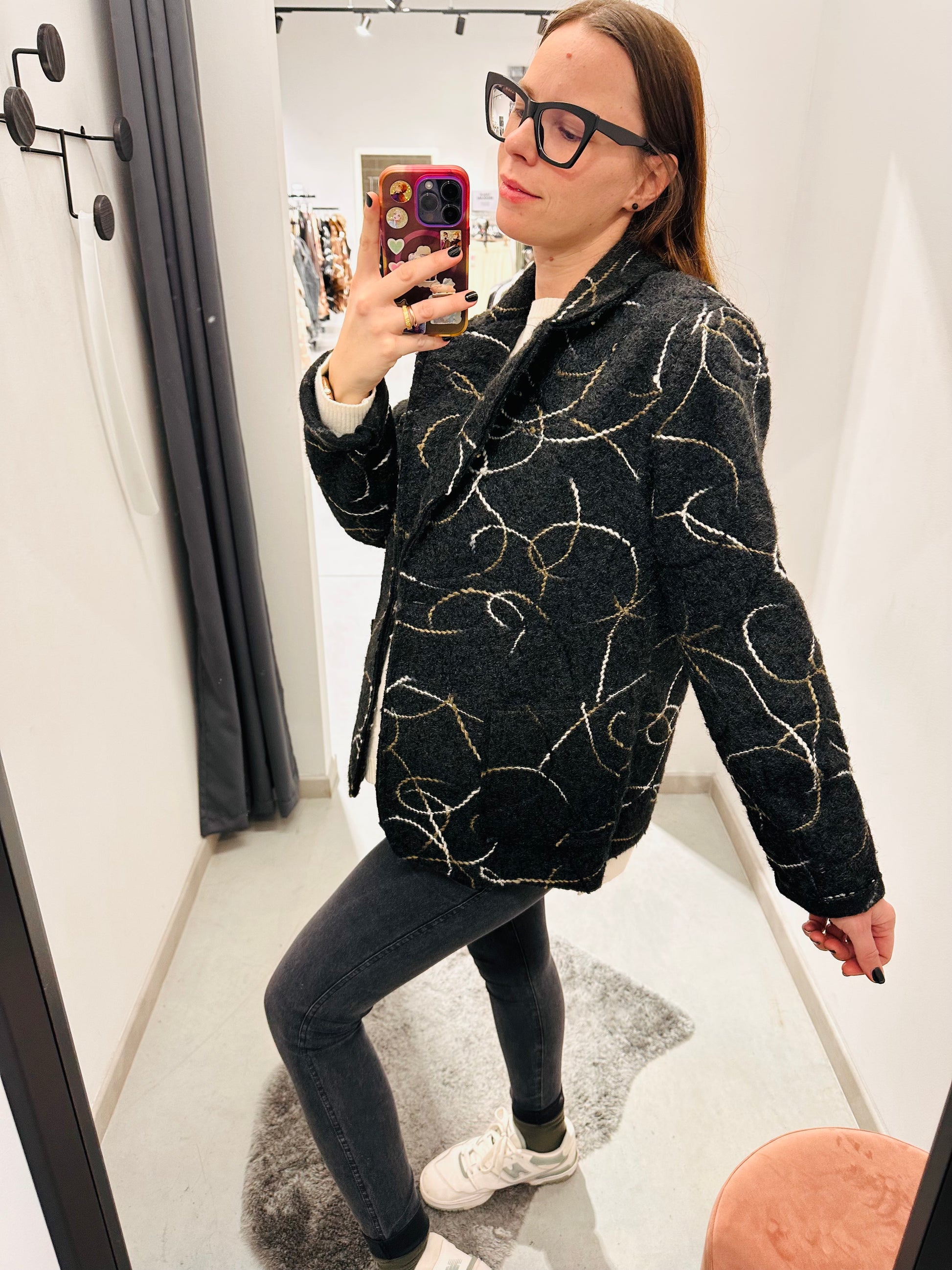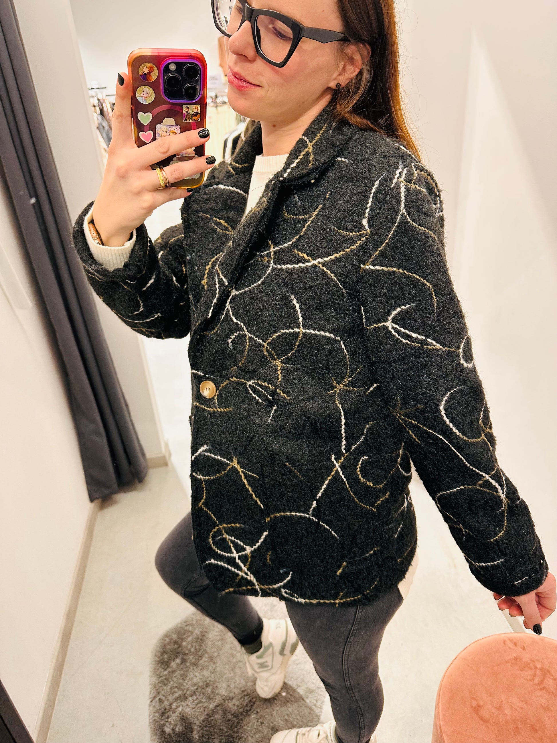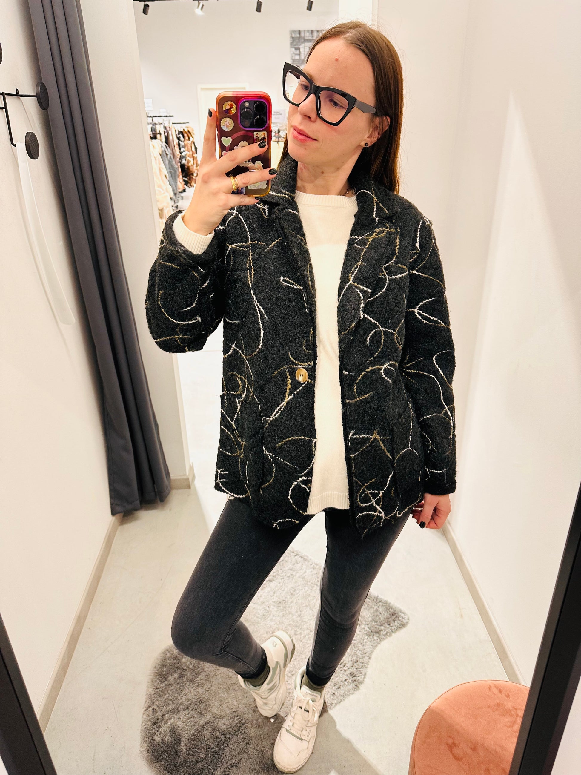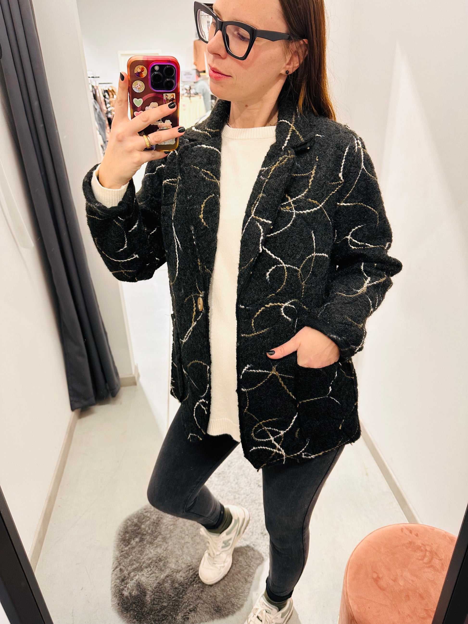 Cappottino a giacca in simil lana cotta, chiusura con bottone. Vestibilità regolare