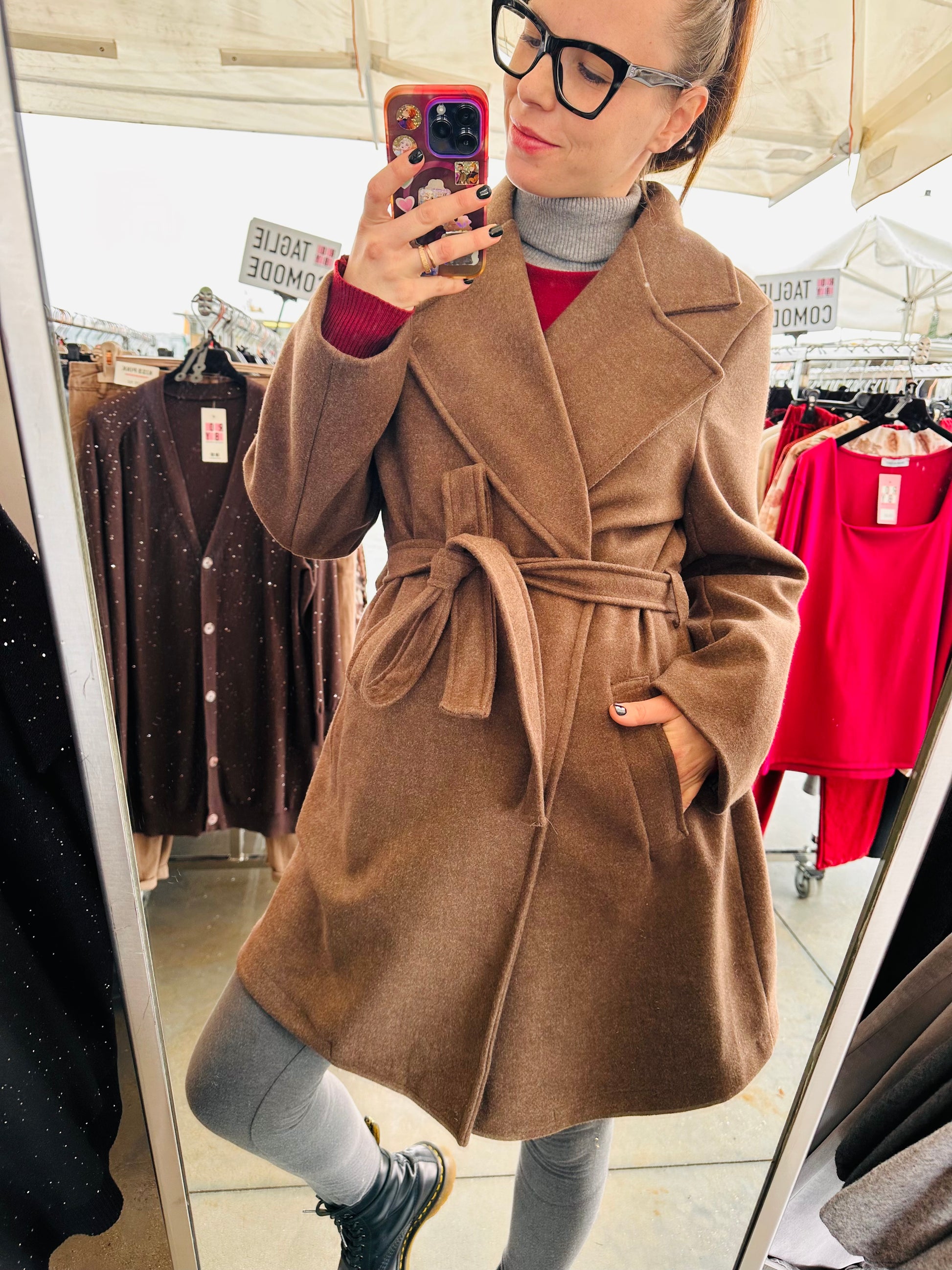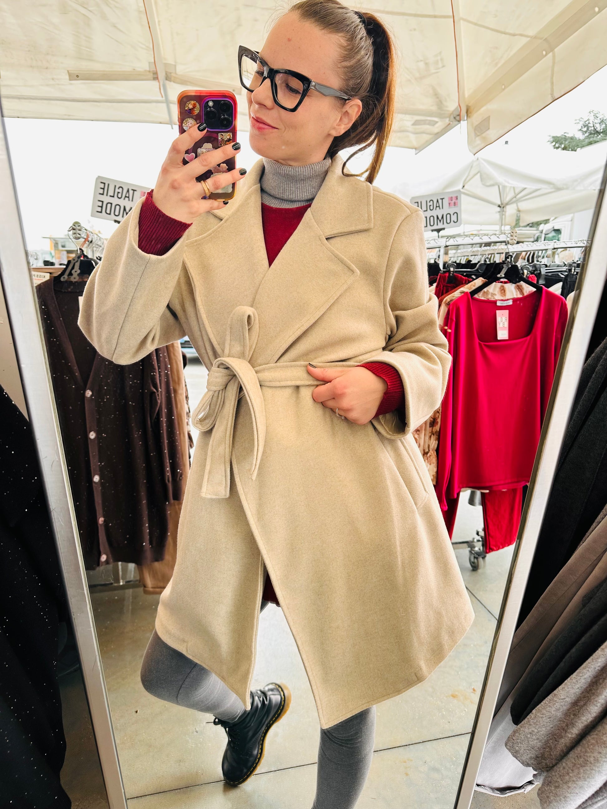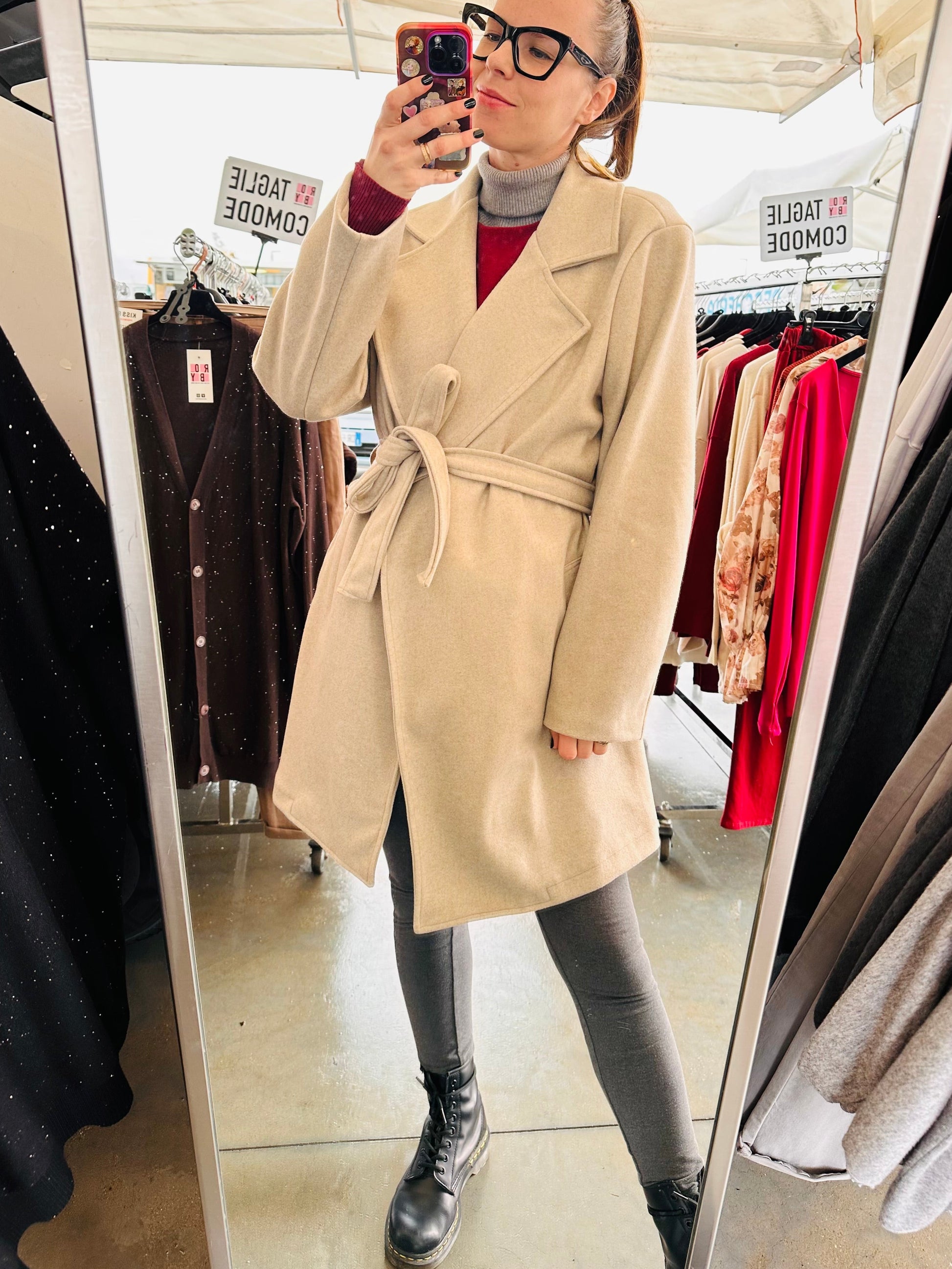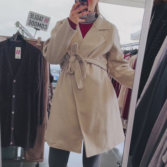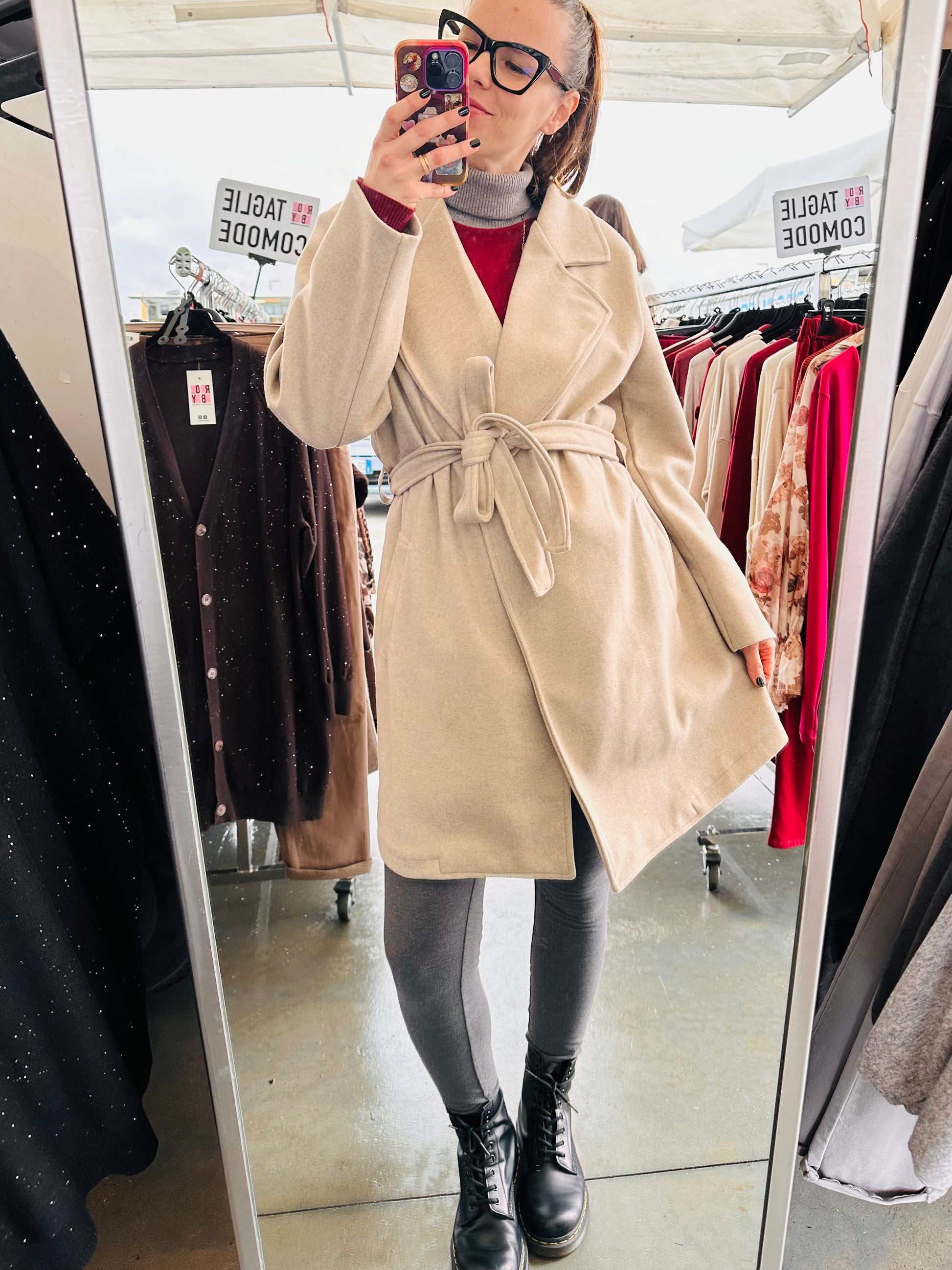 Cappottino in panno con cintura in vita, vestibilità regolare.