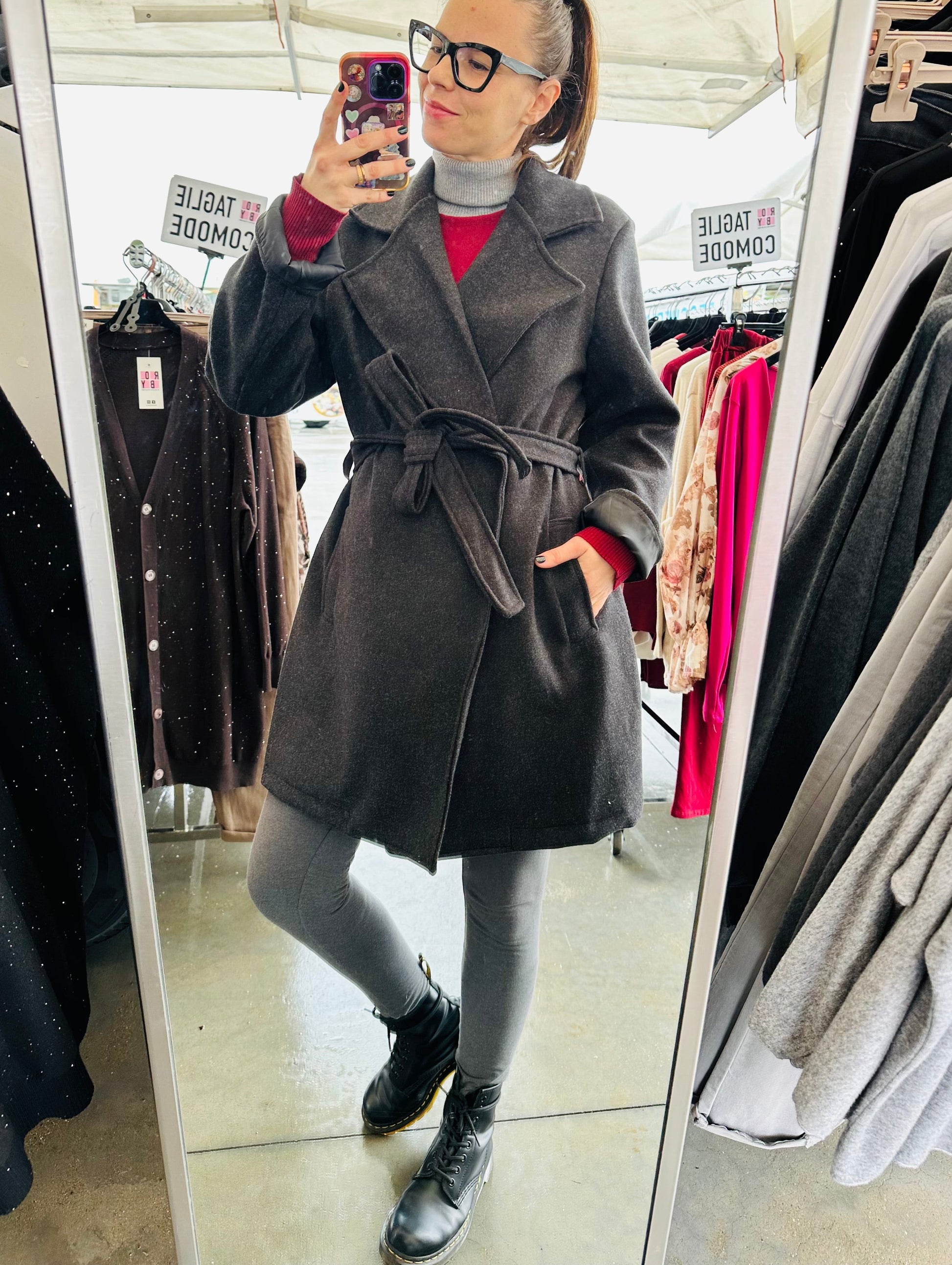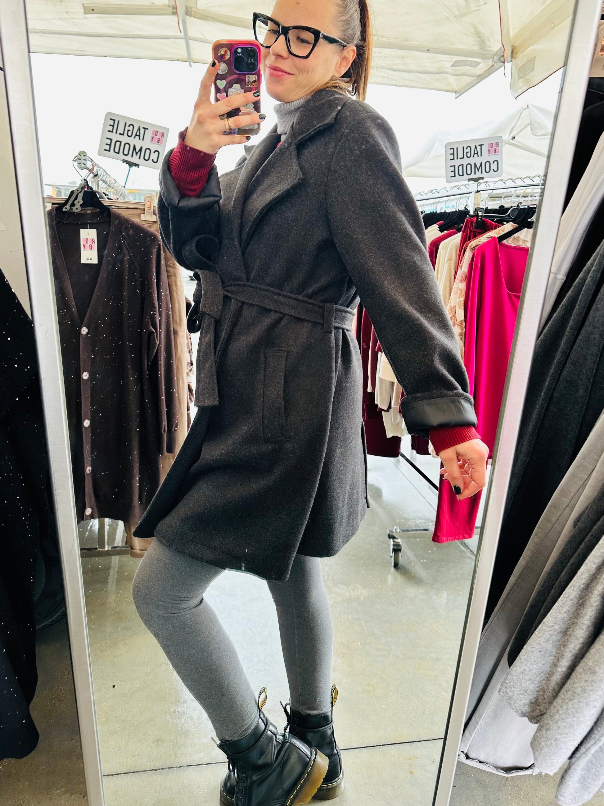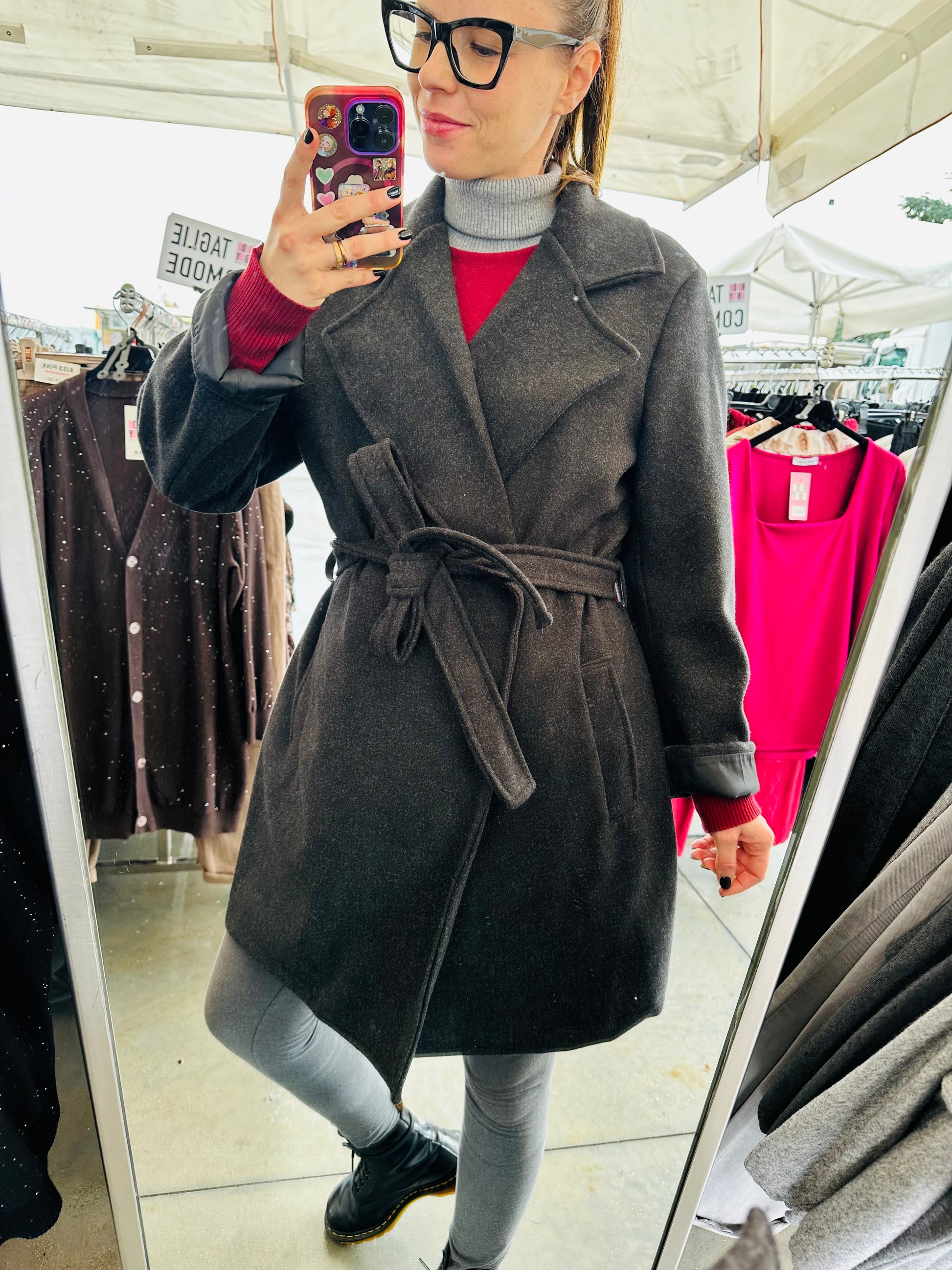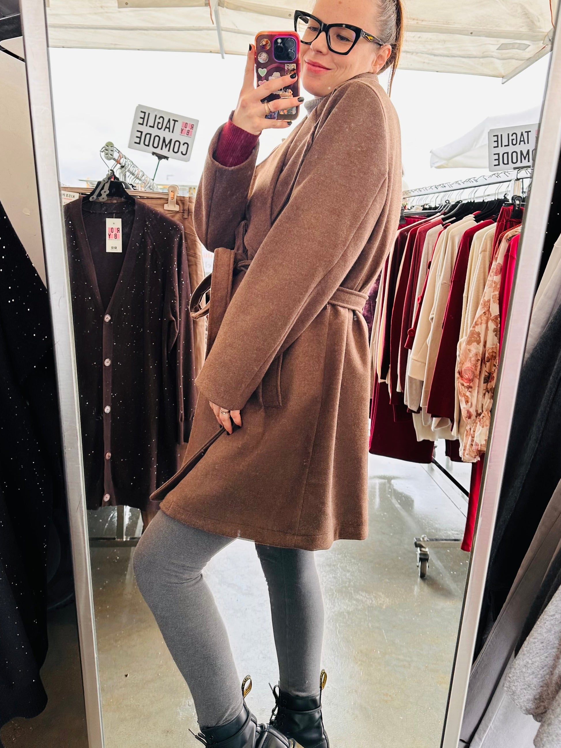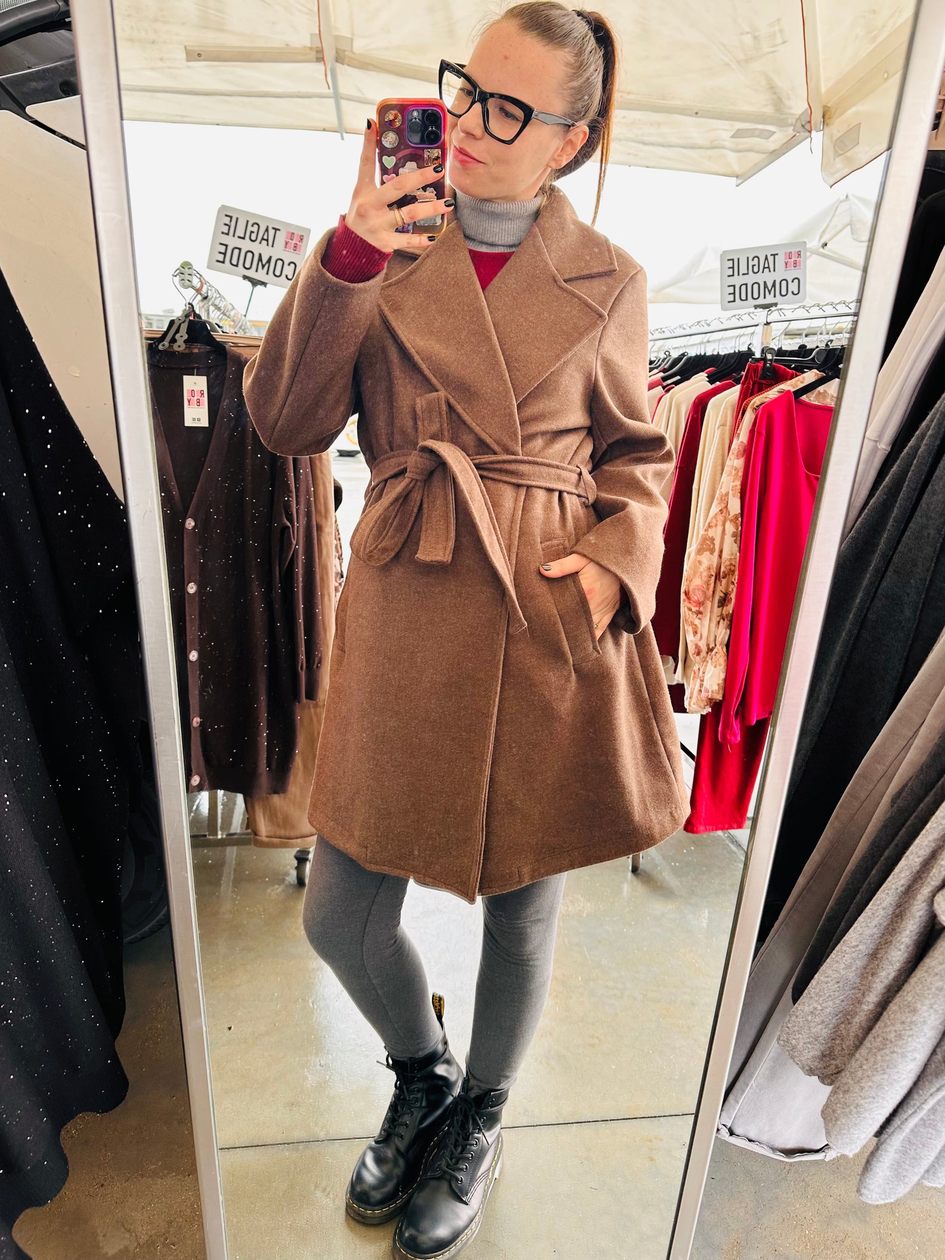 Cappottino in panno con cintura in vita, vestibilità regolare.