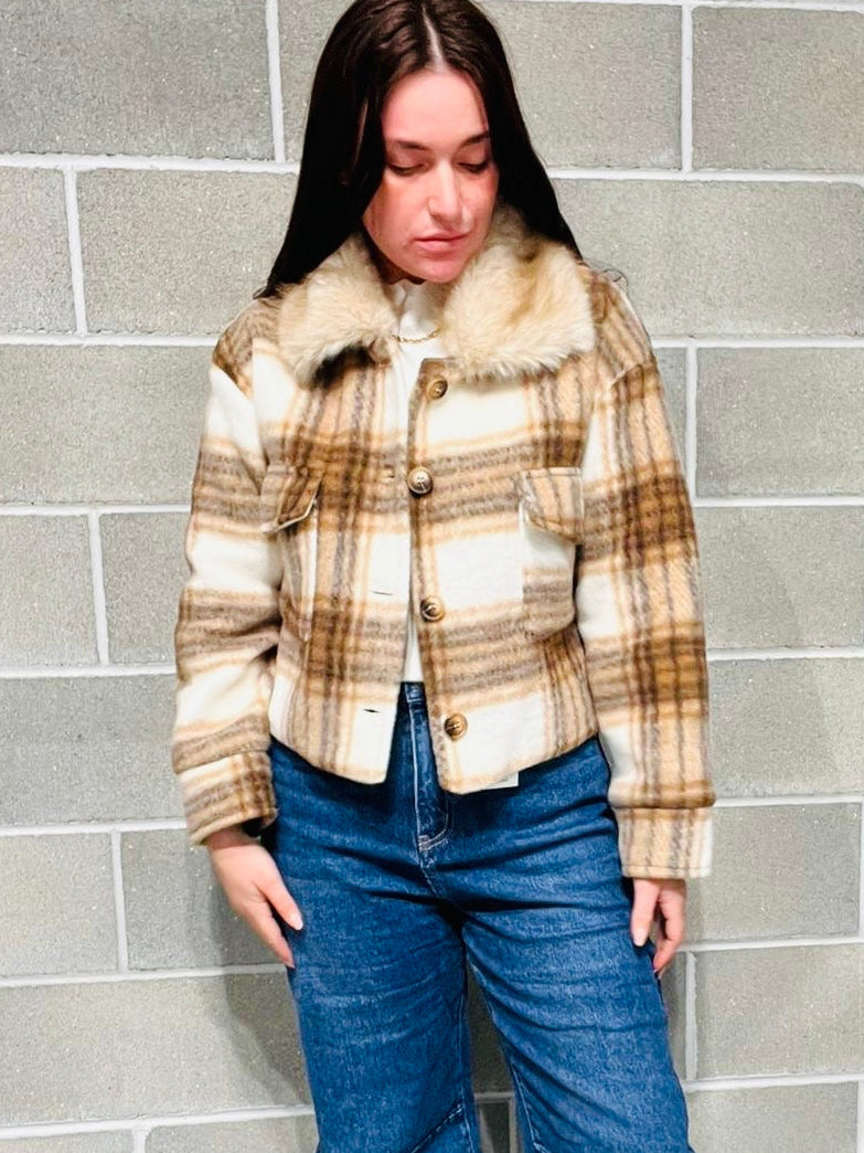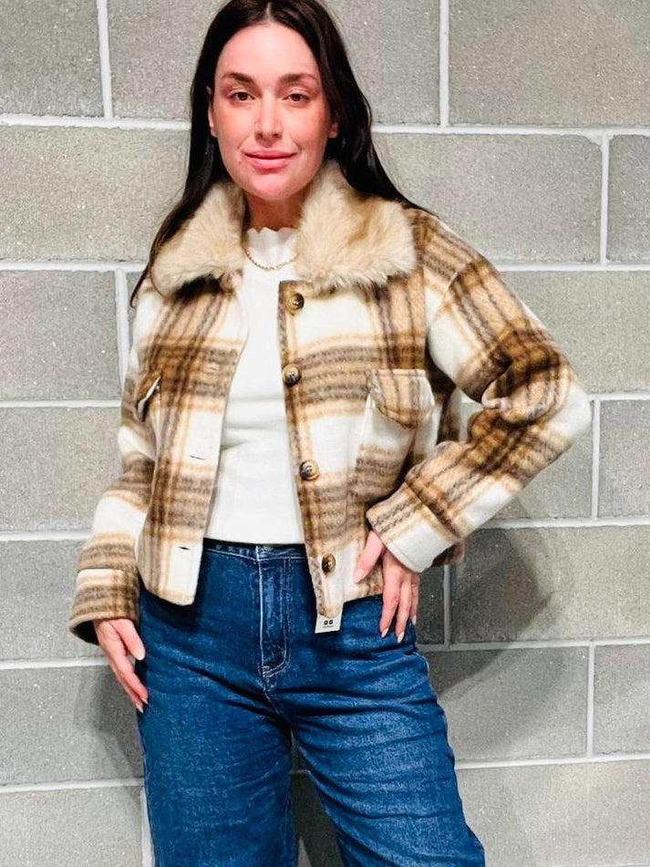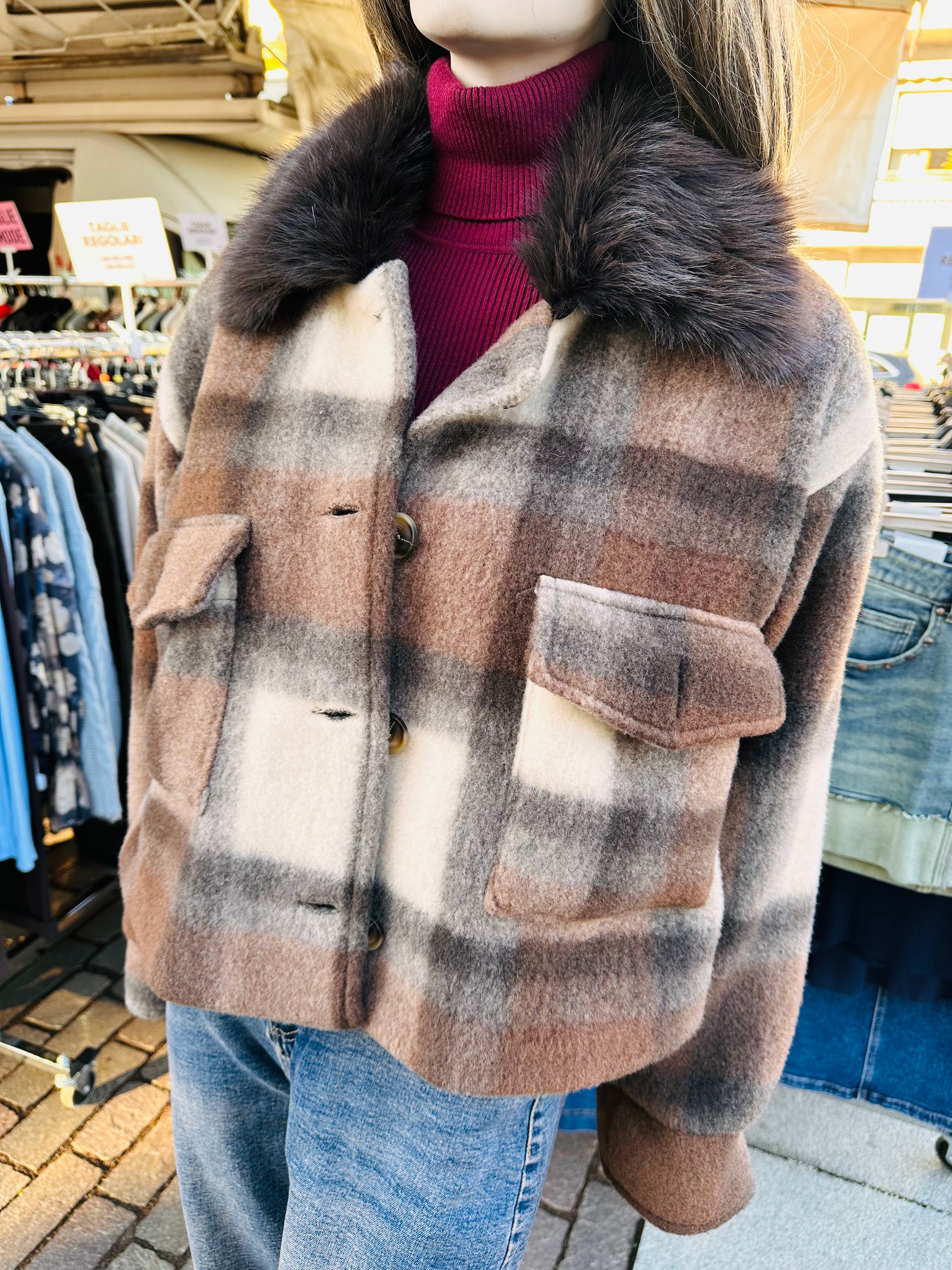CAPPOTTINO CROP QUADRI COLLETTO ECOPELLICCIA