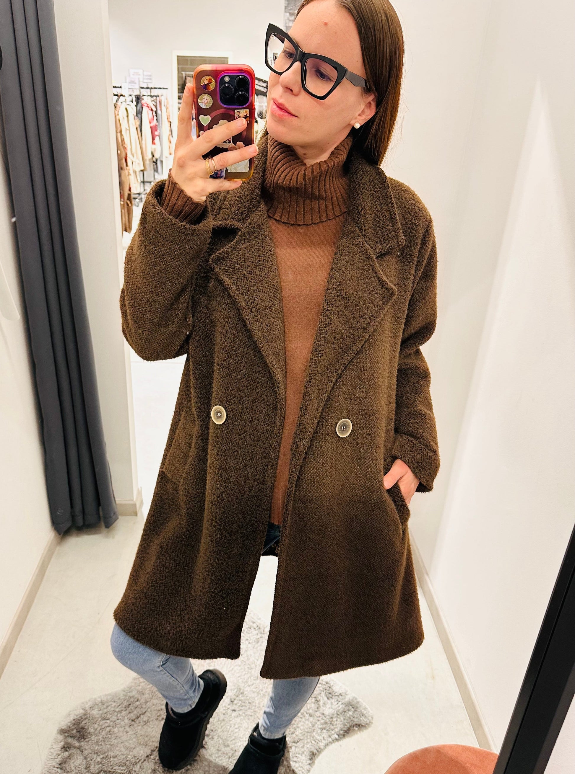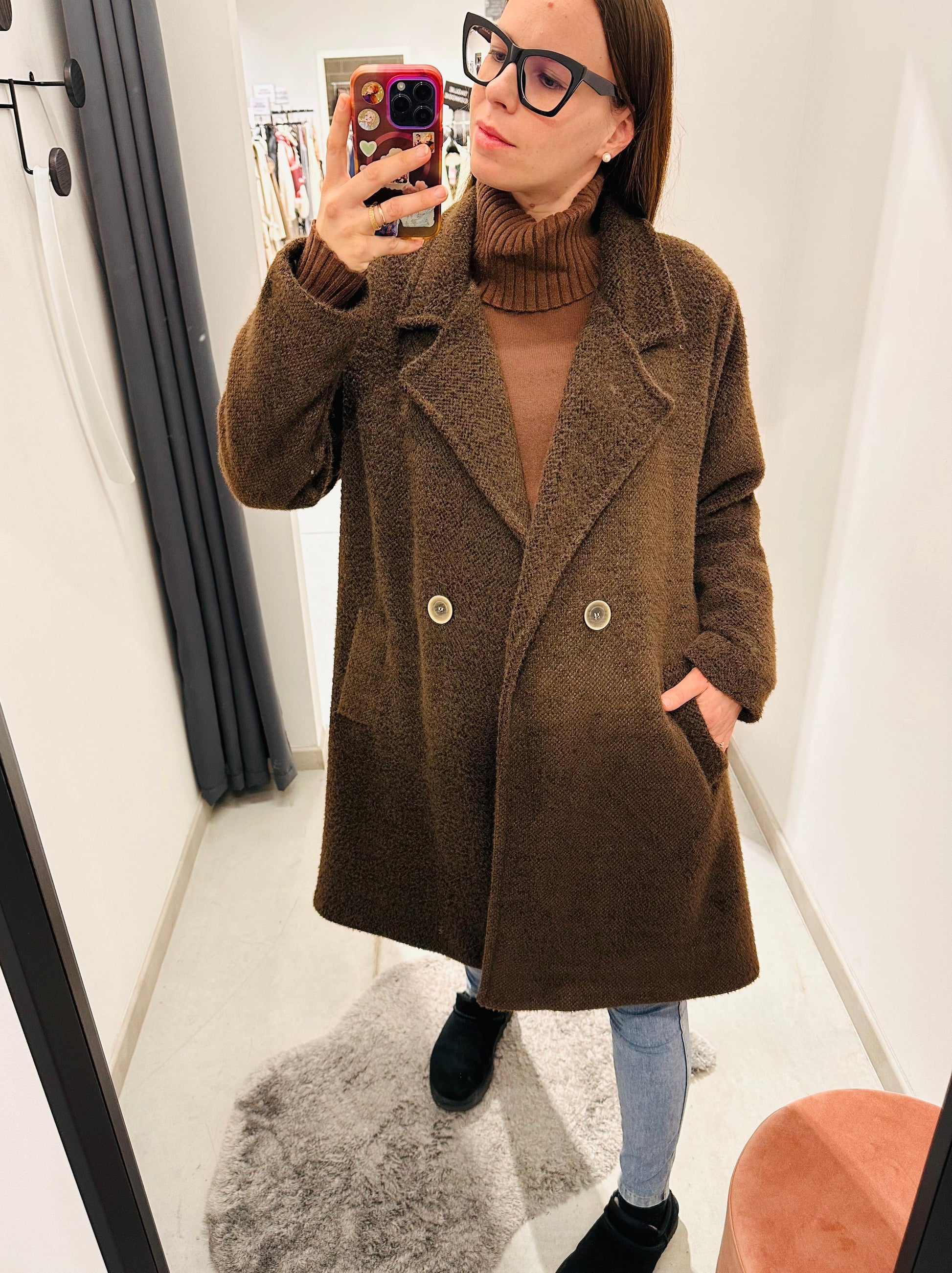 Cappottino pelosetto doppiopetto con tasche, vestibilità regolare