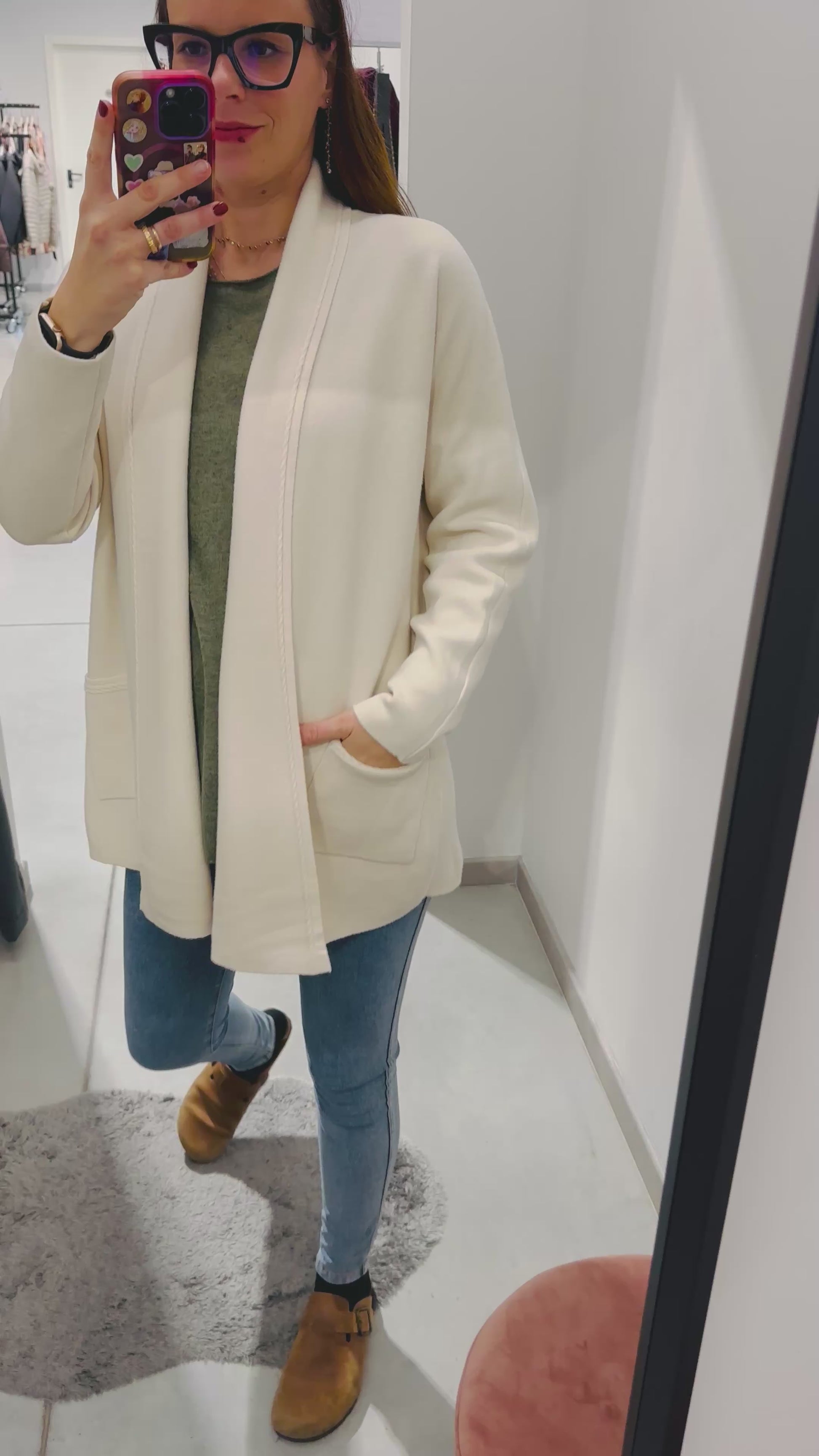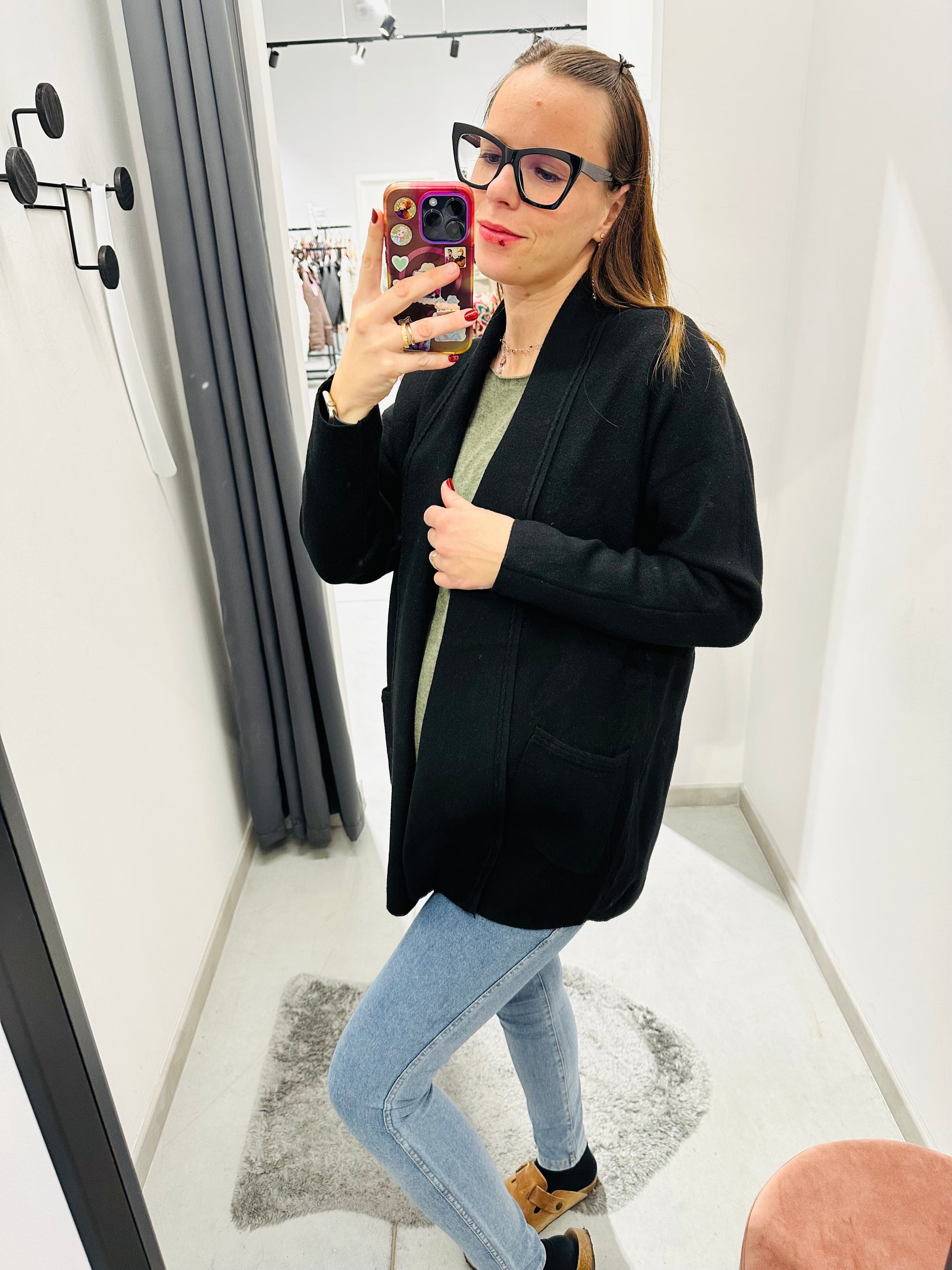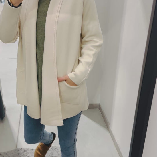 Cardigan in calda viscosa, taglio aperto. Dettagli lavorati, vestibilità regolare