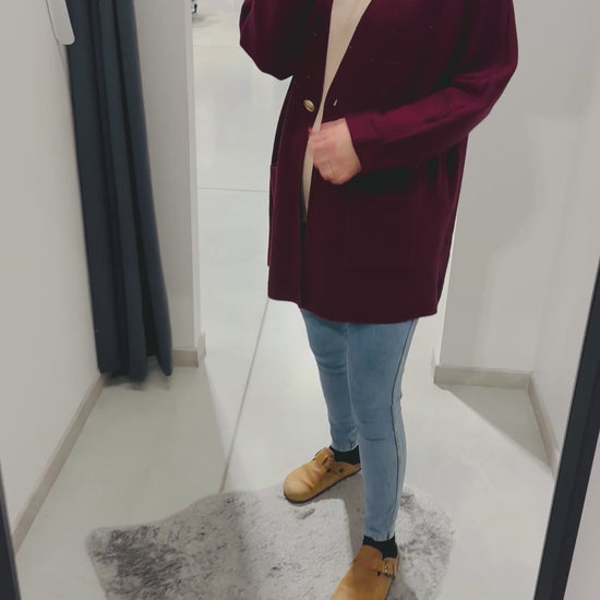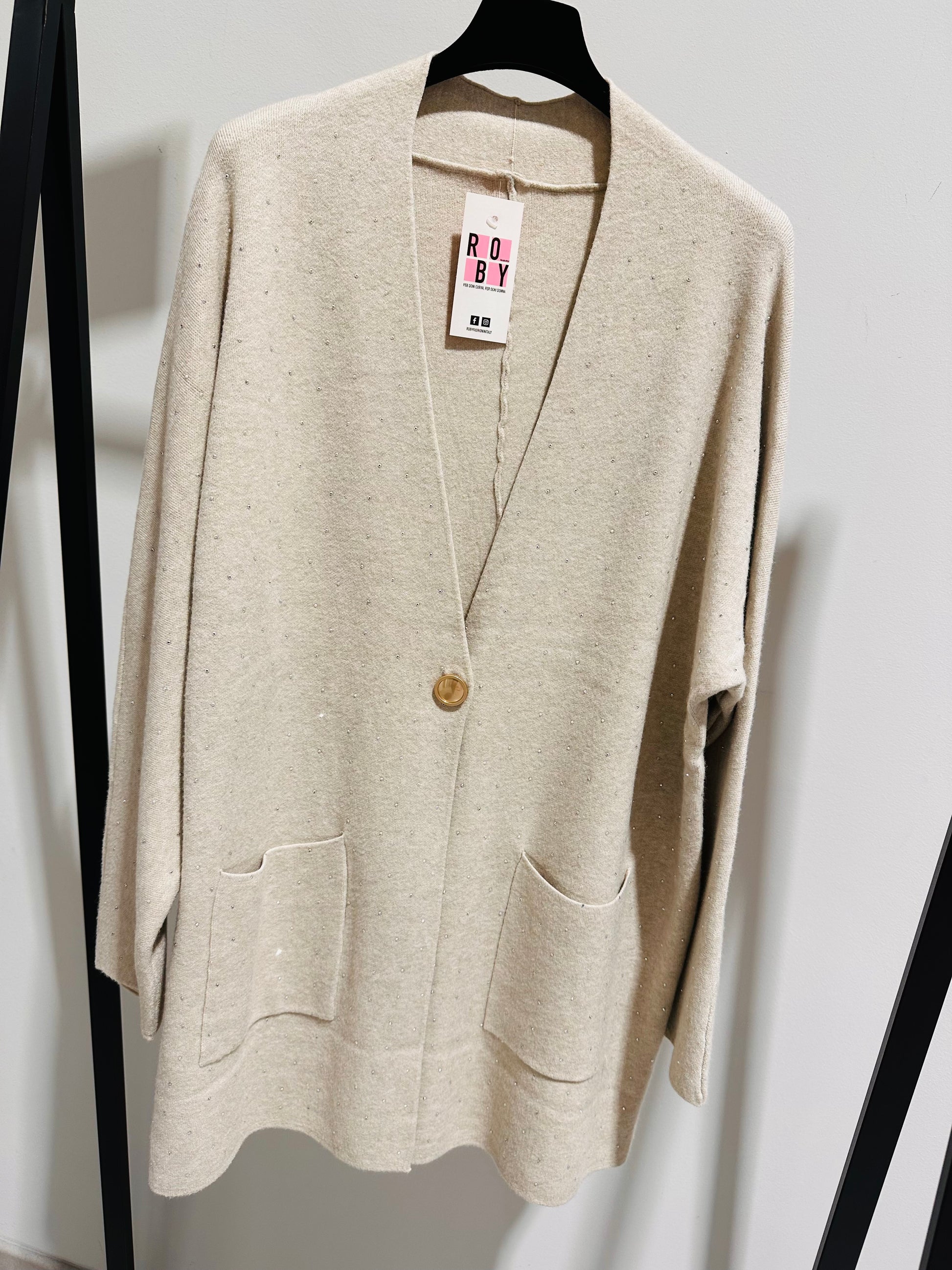 Cardigan in calda viscosa con bottone gioiello, vestibilità regolare