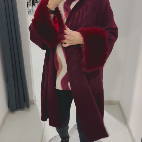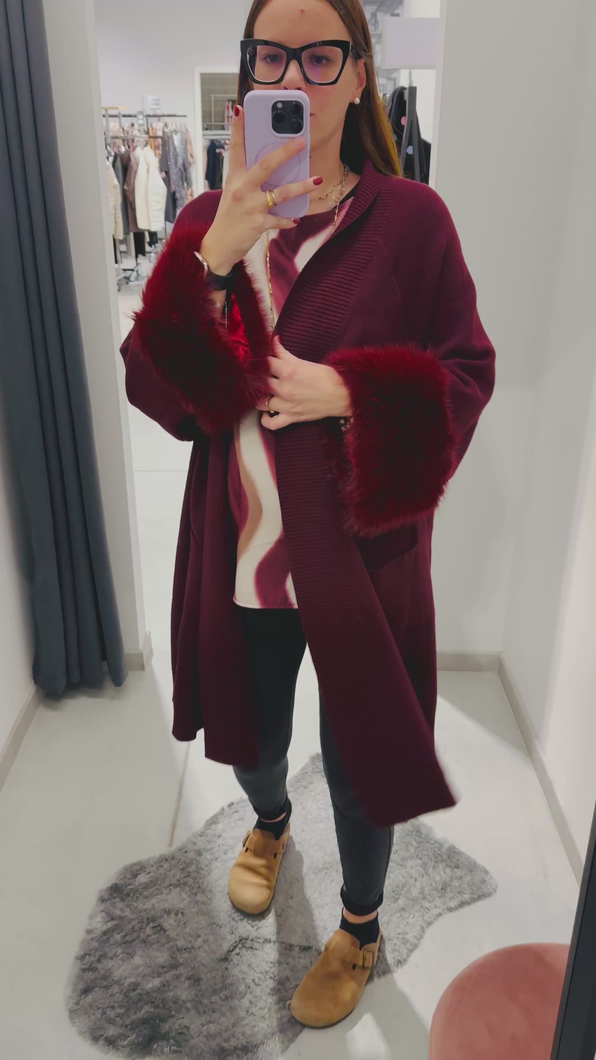 Cardigan lungo taglio aperto in calda viscosa, con polsi in ecopelliccia. Vestibilità regolare