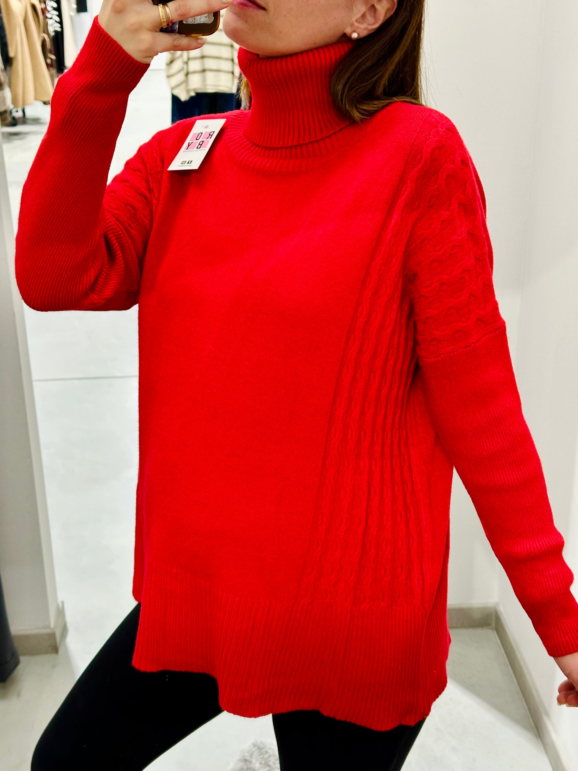 Dolcevita in calda viscosa, lavorato lateralmente. Vestibilità regolare