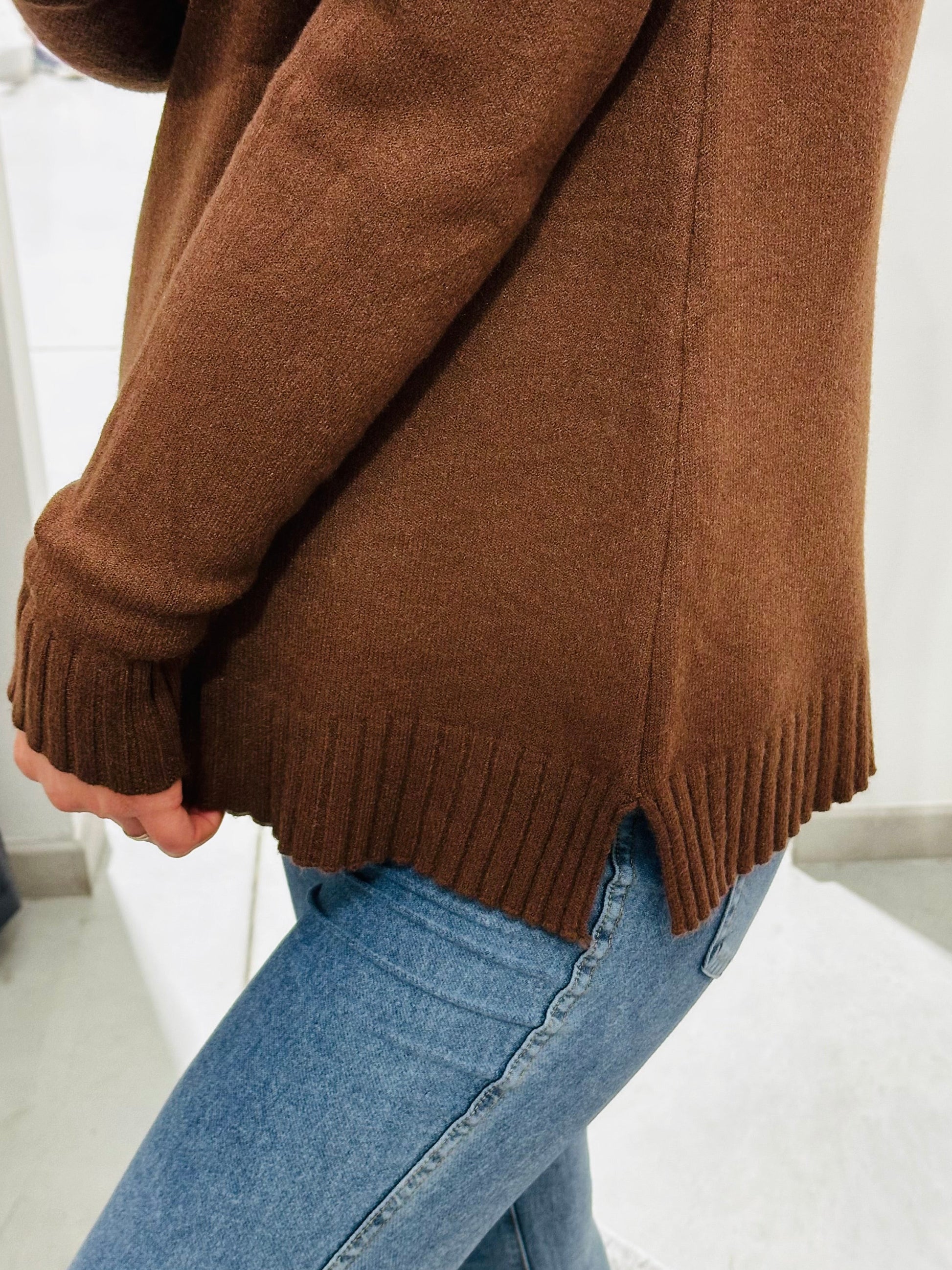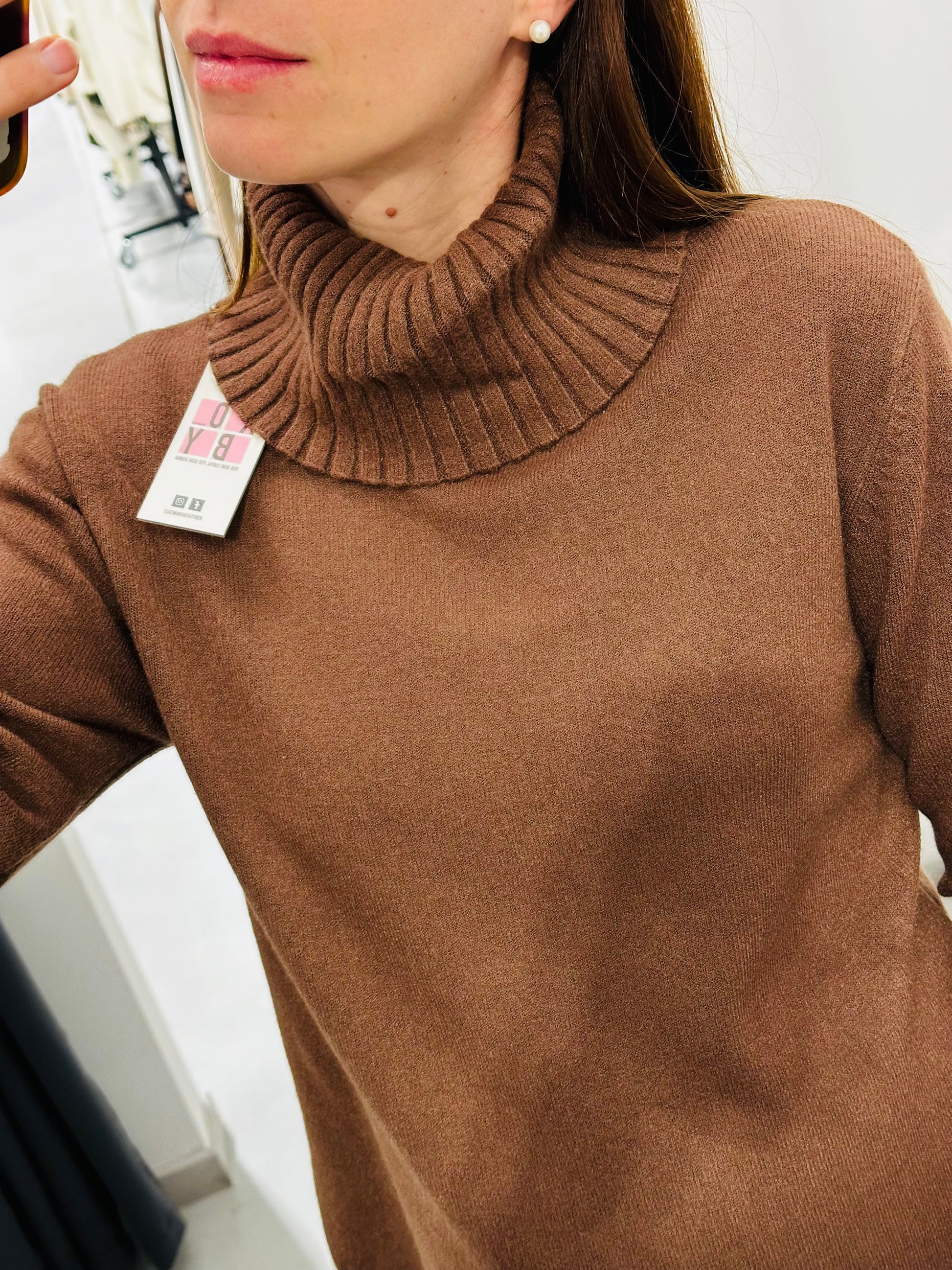 Dolcevita in calda viscosa, con collo morbido. Spacchetti laterali, vestibilità morbida