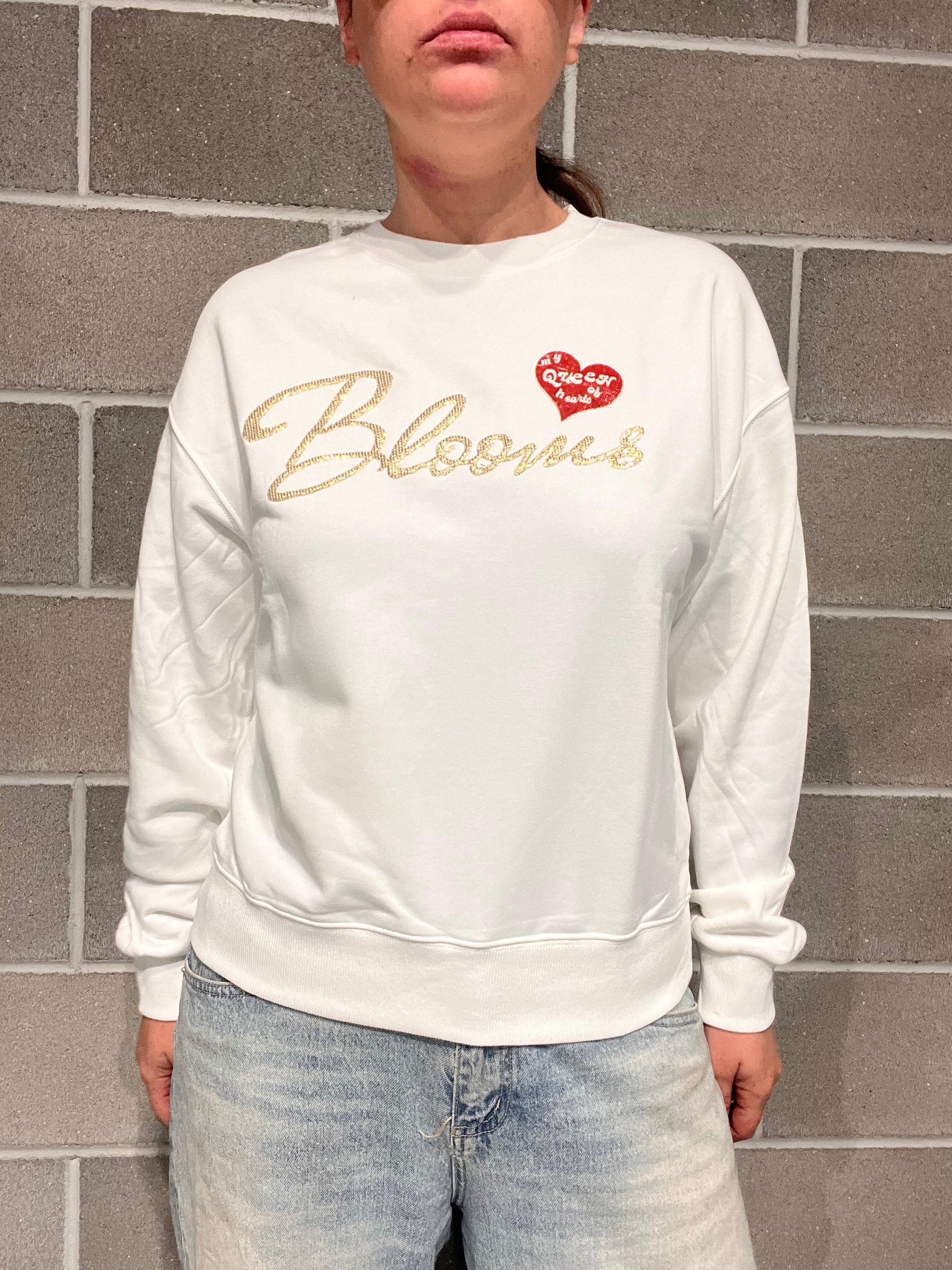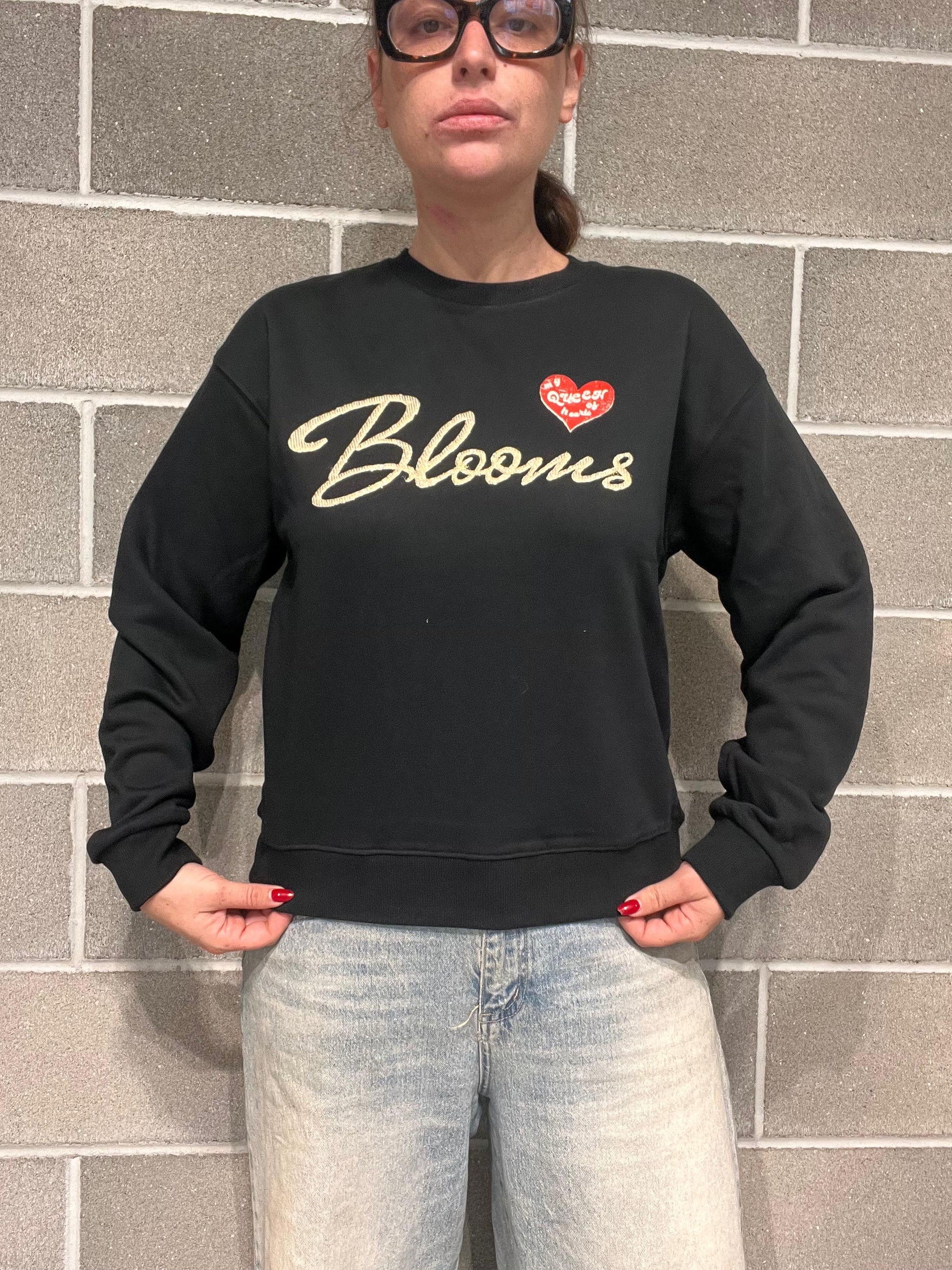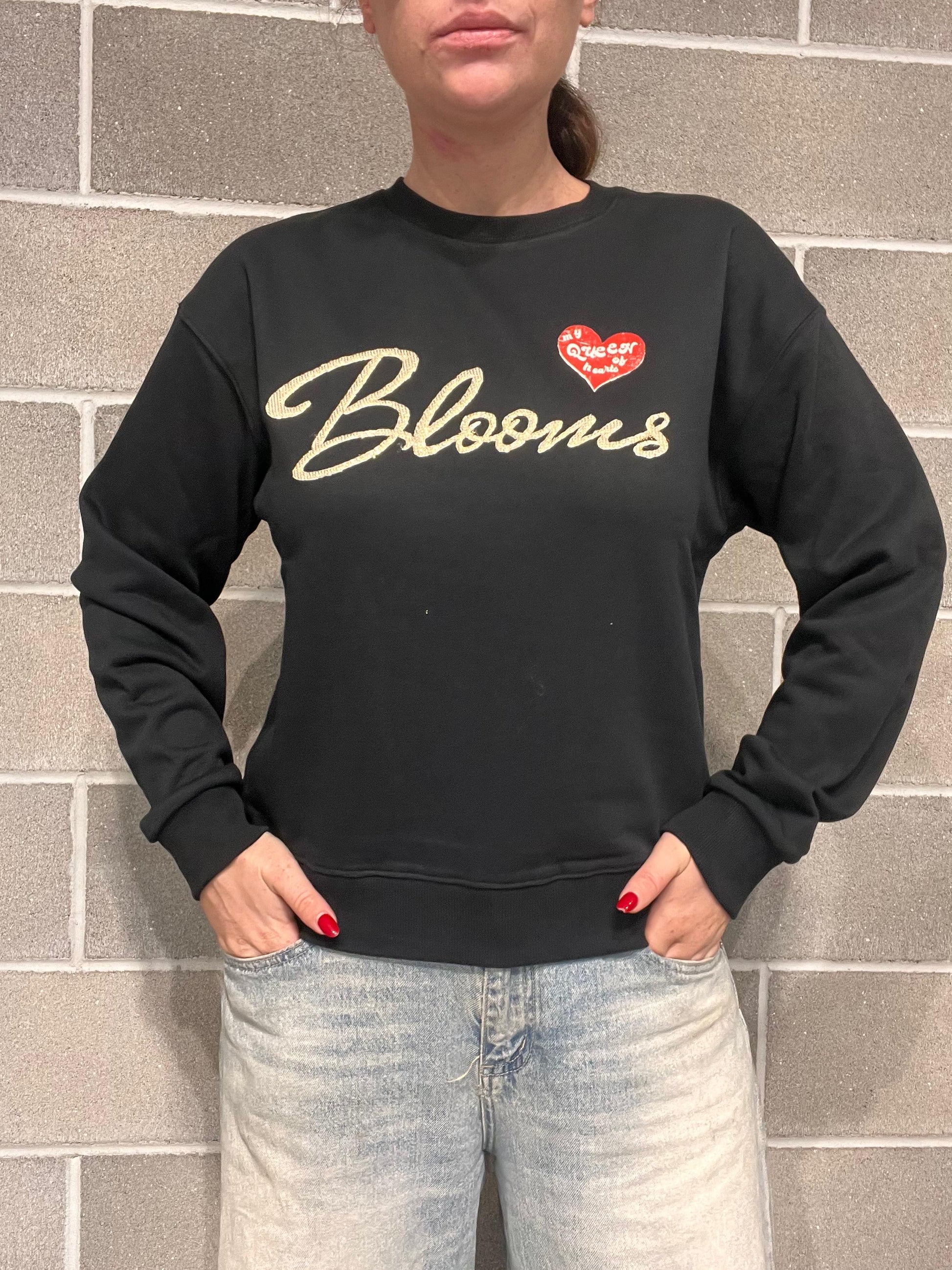 Felpa in cotone garzato, scritta BLOOMS in rilievo. Vestibilità regolare