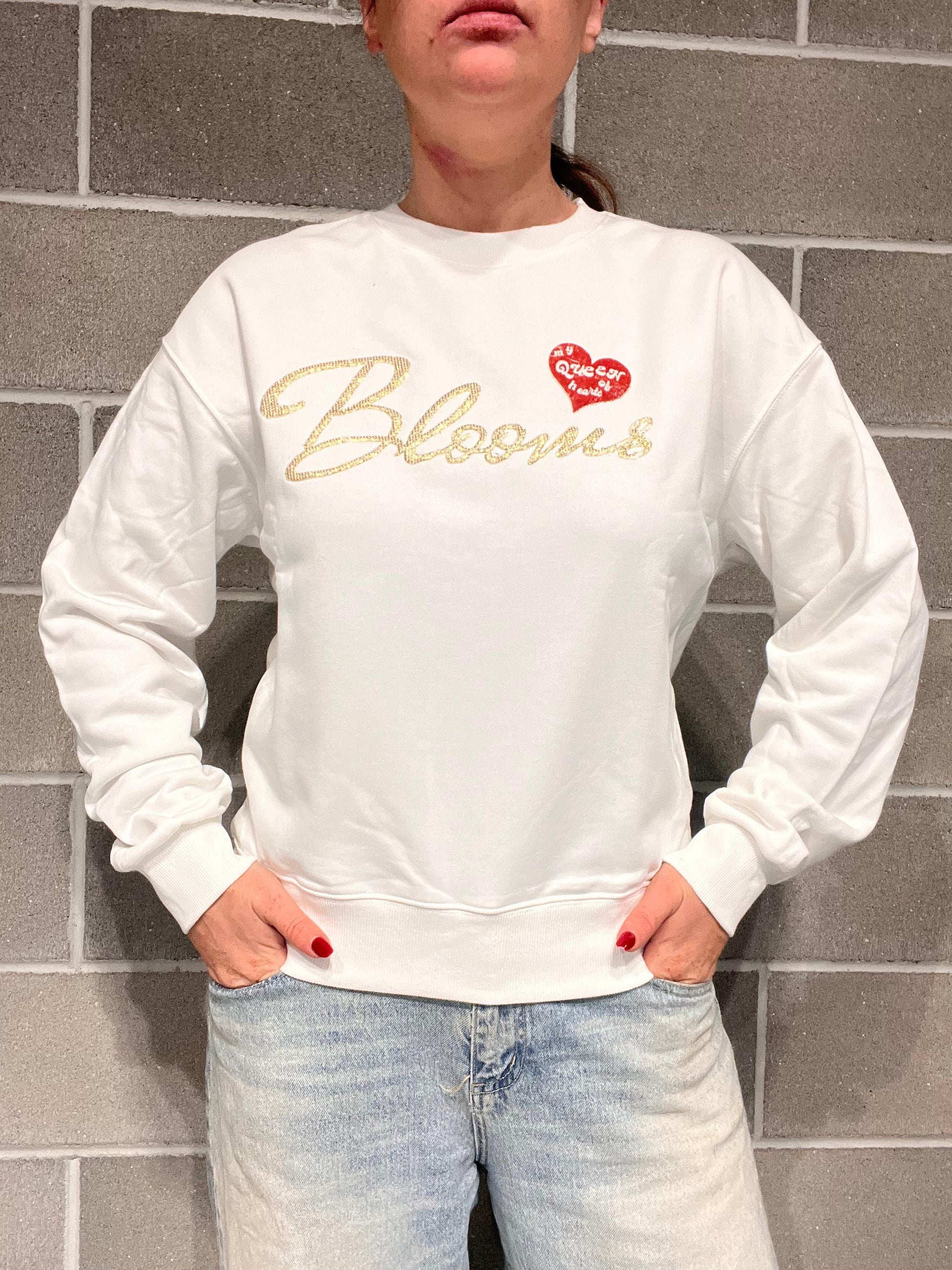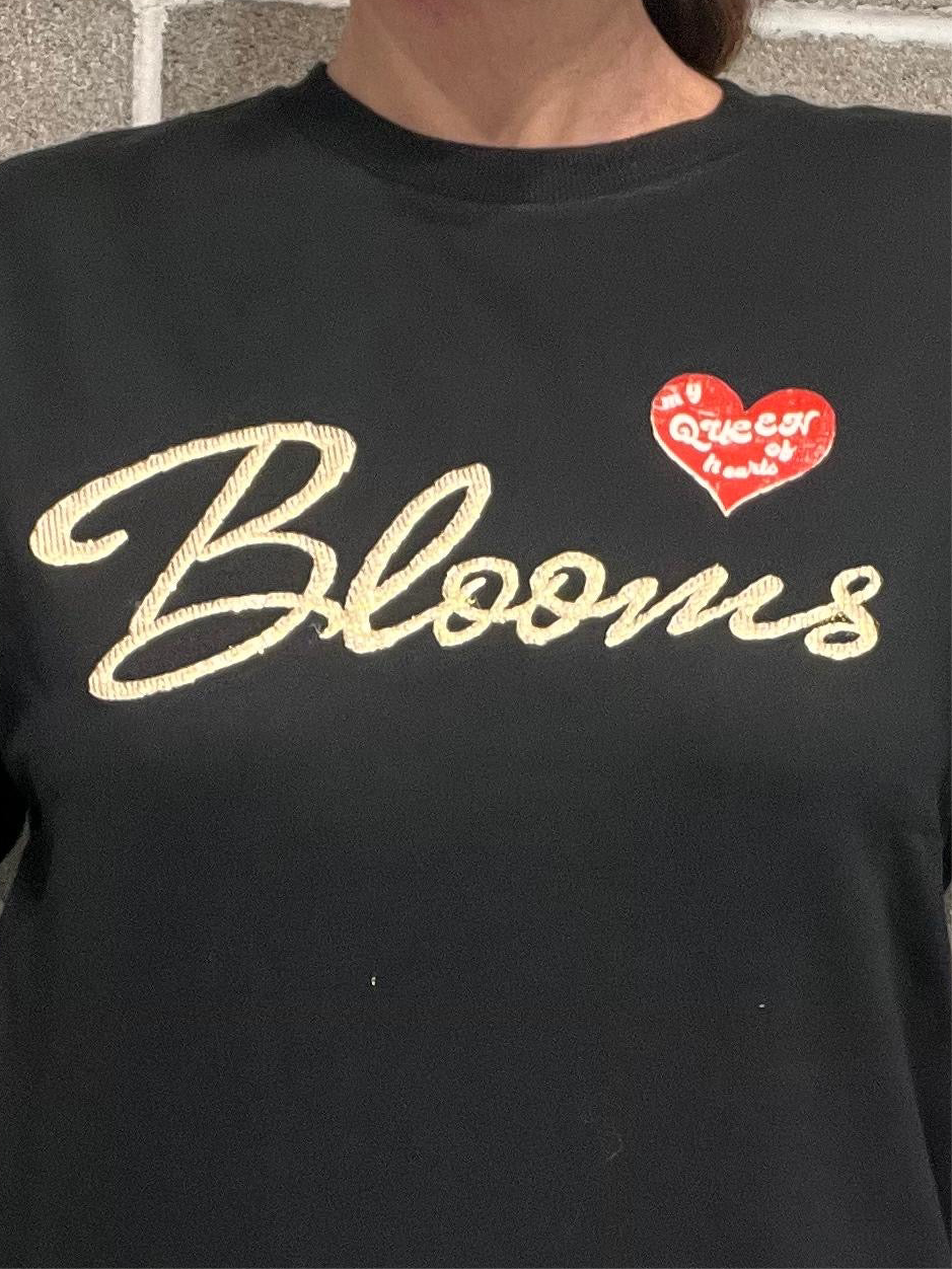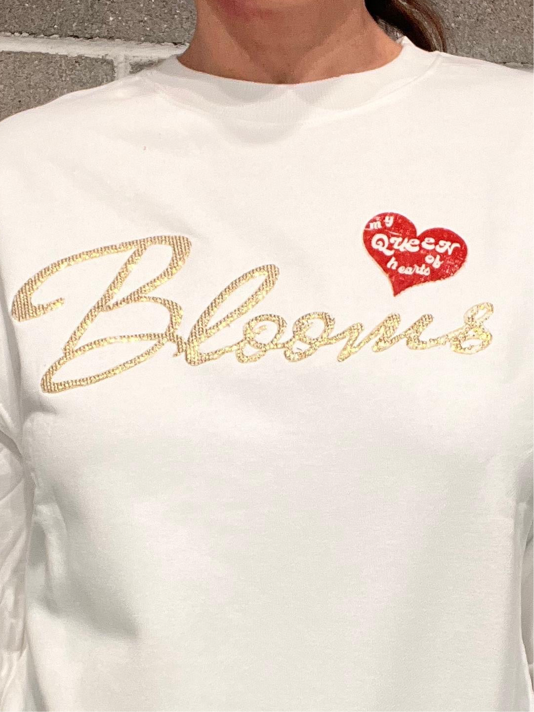 Felpa in cotone garzato, scritta BLOOMS in rilievo. Vestibilità regolare