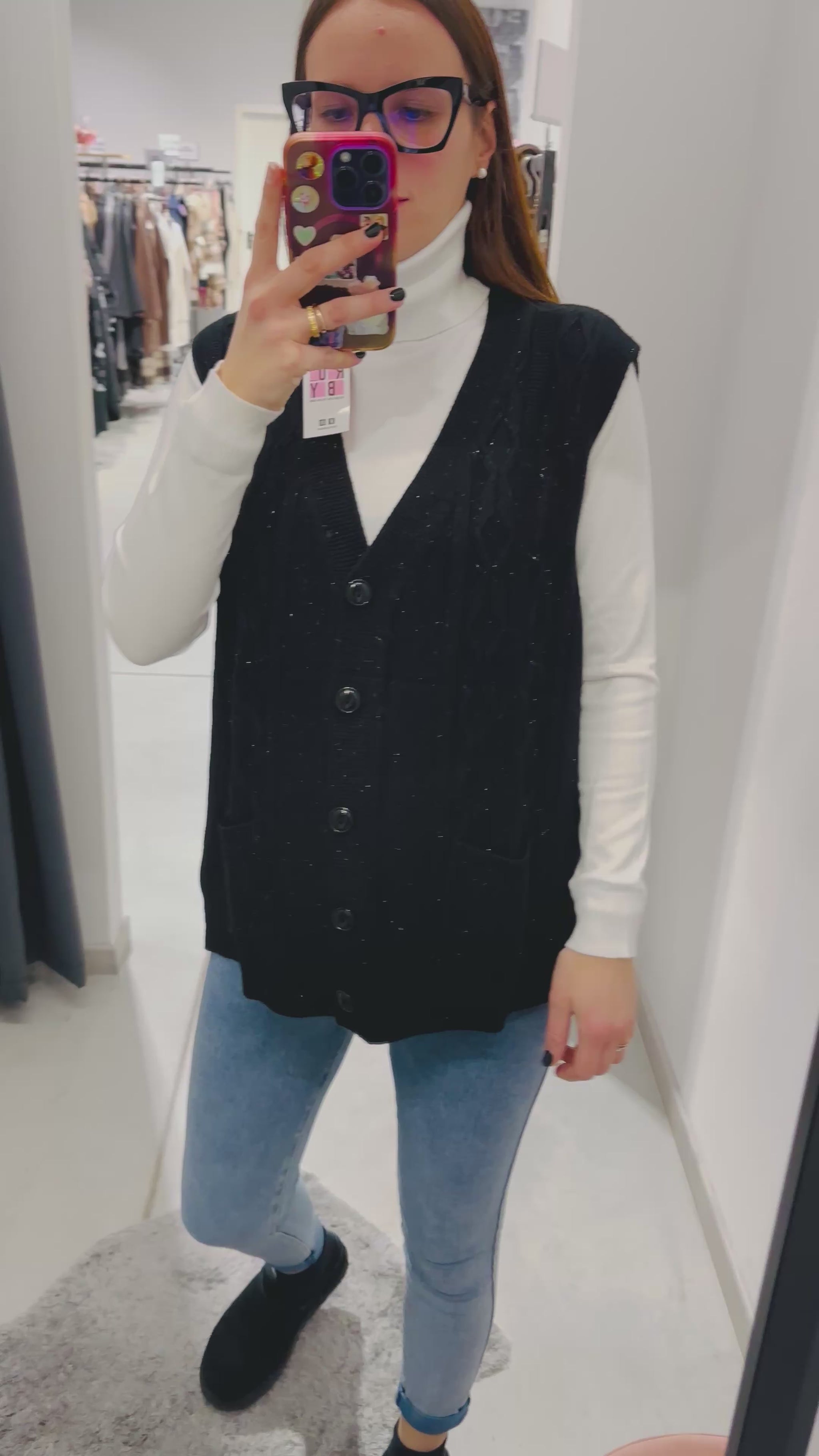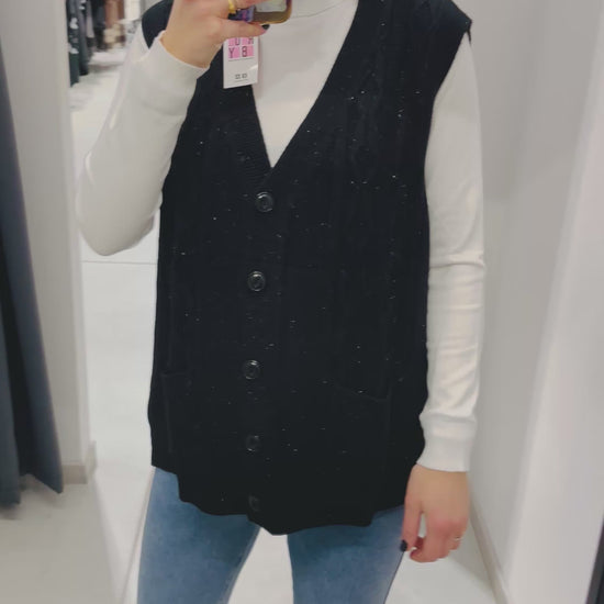 Gilet in calda viscosa laminato, con taschine. Vestibilità regolare