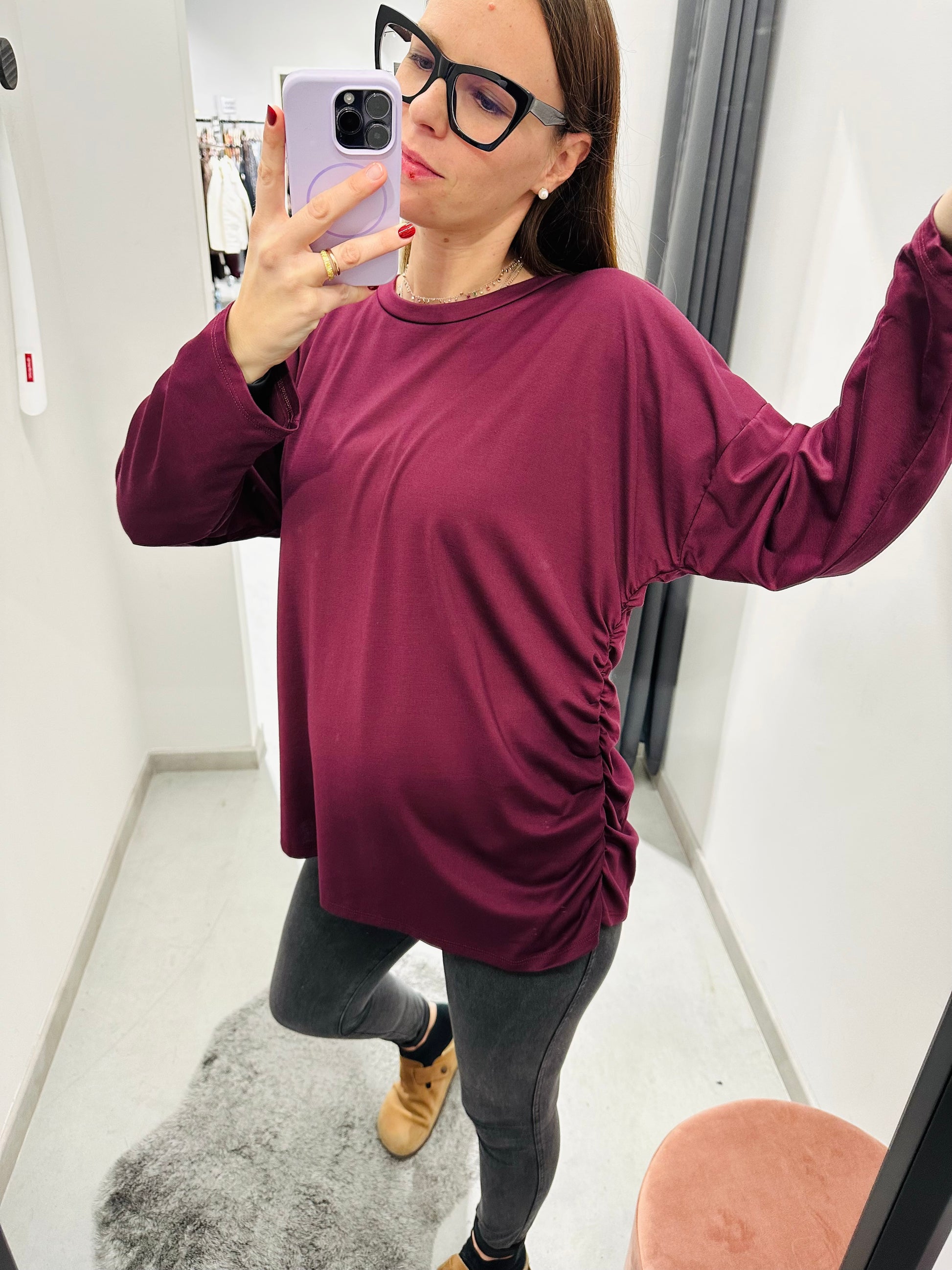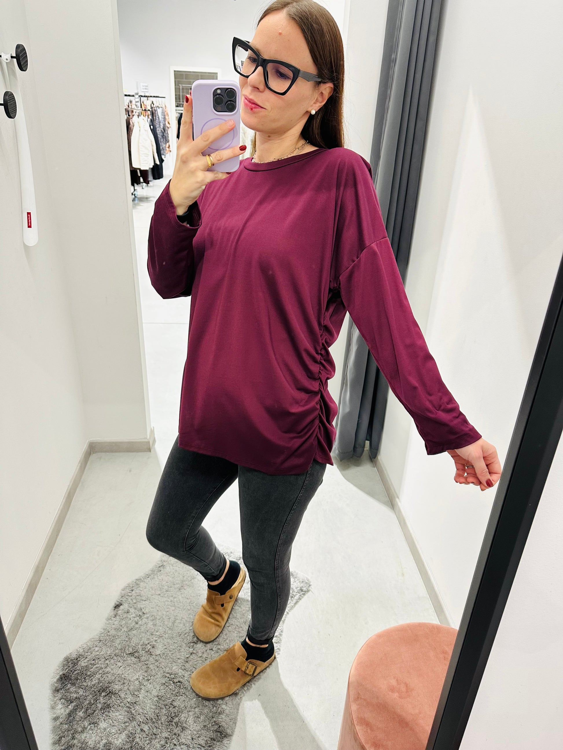 Maglietta in viscosa con arricciatura laterale, vestibilità regolare