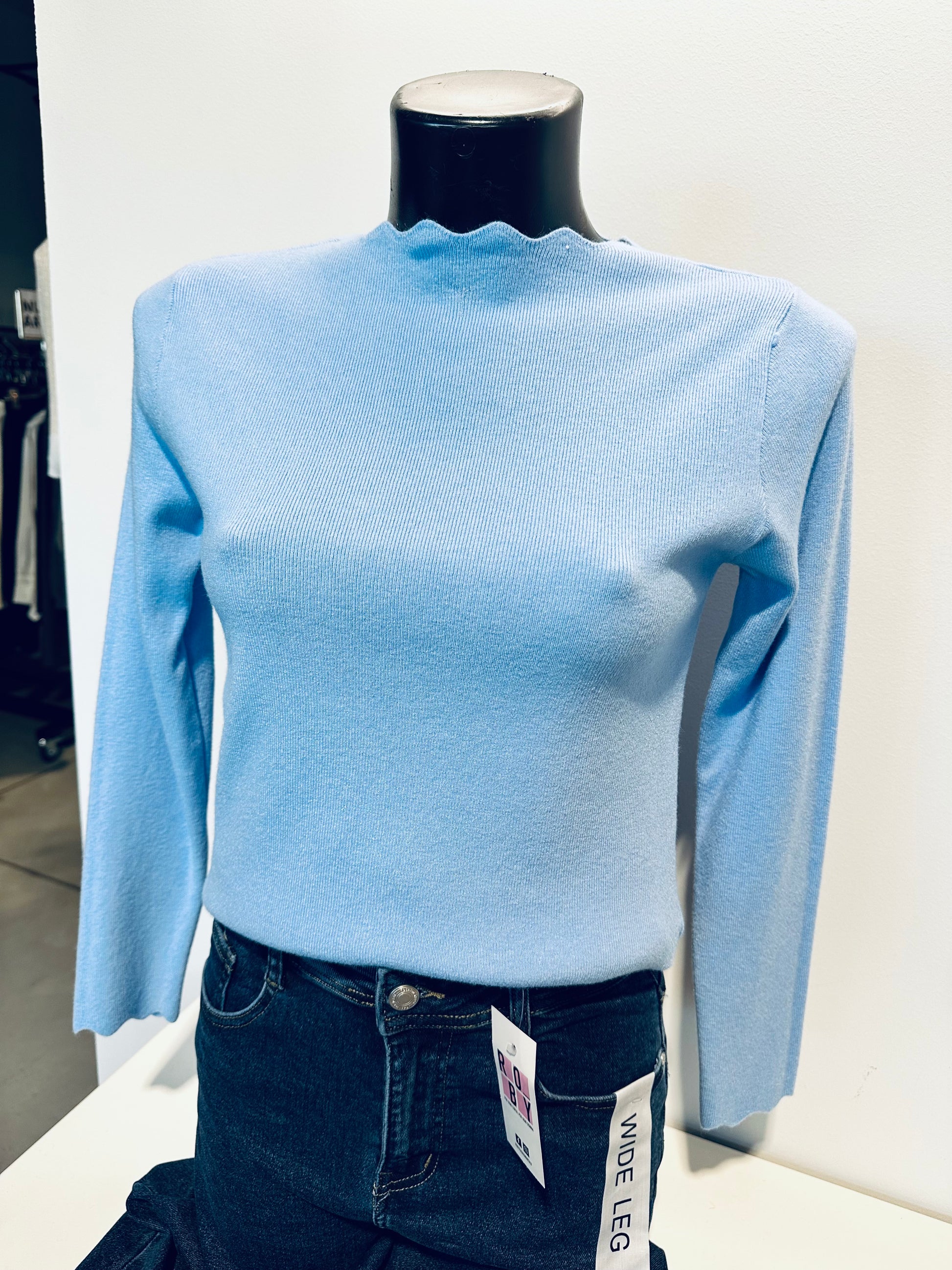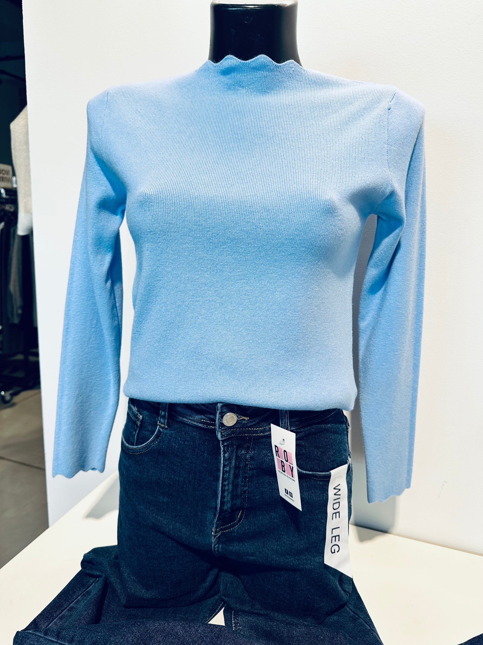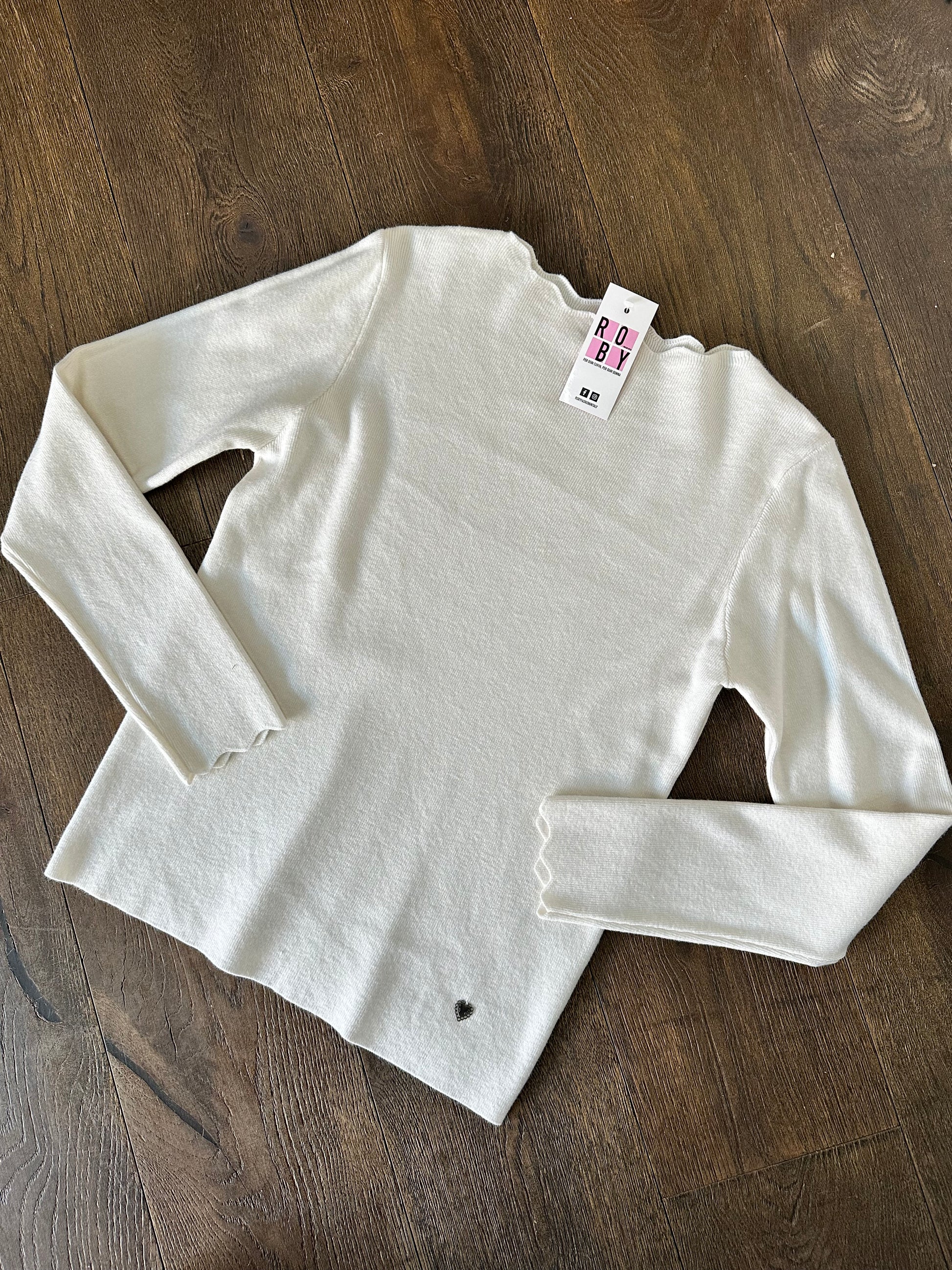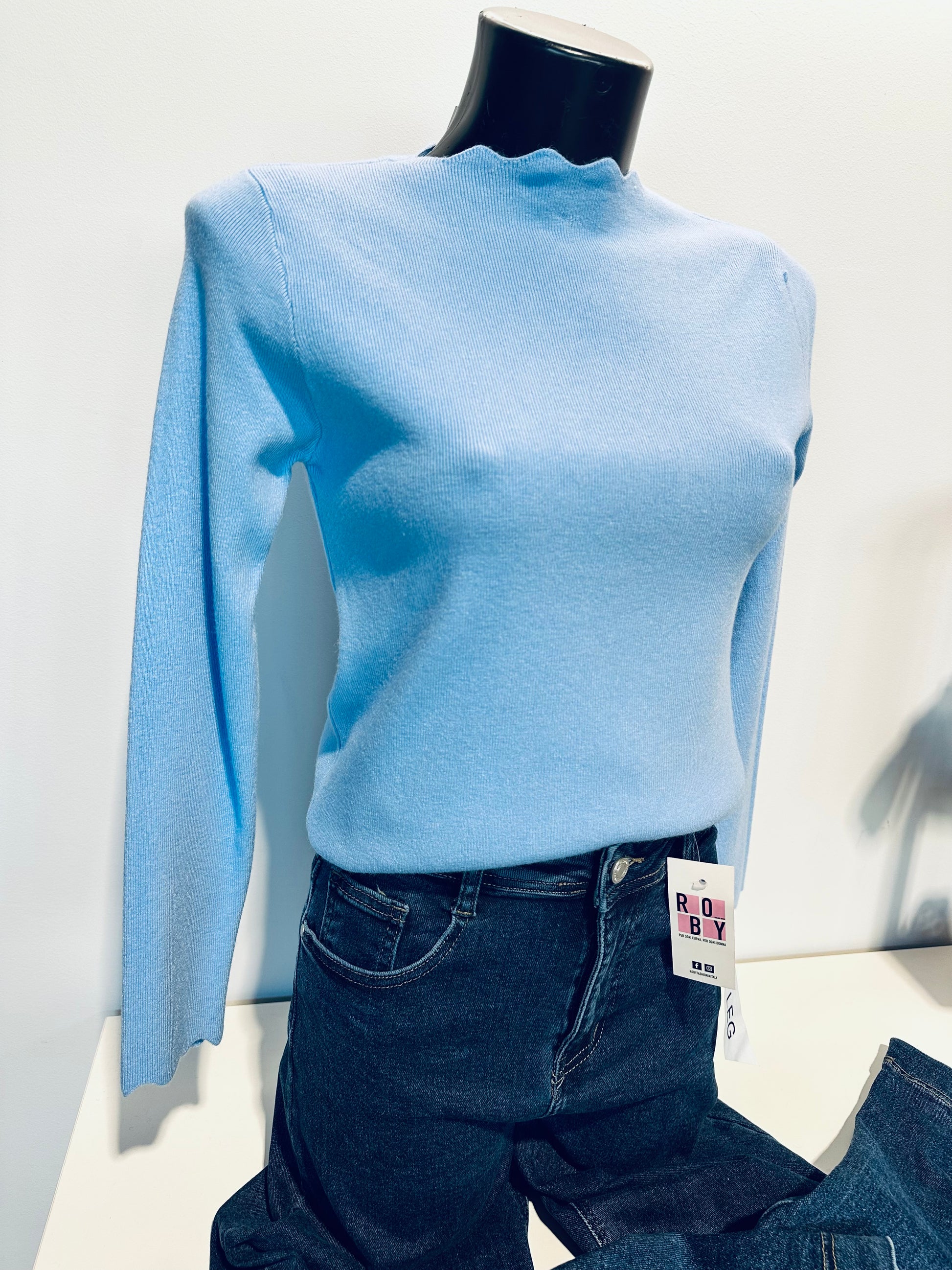 Maglioncino in viscosa, collo e polsi lavorati. Vestibilità regolare