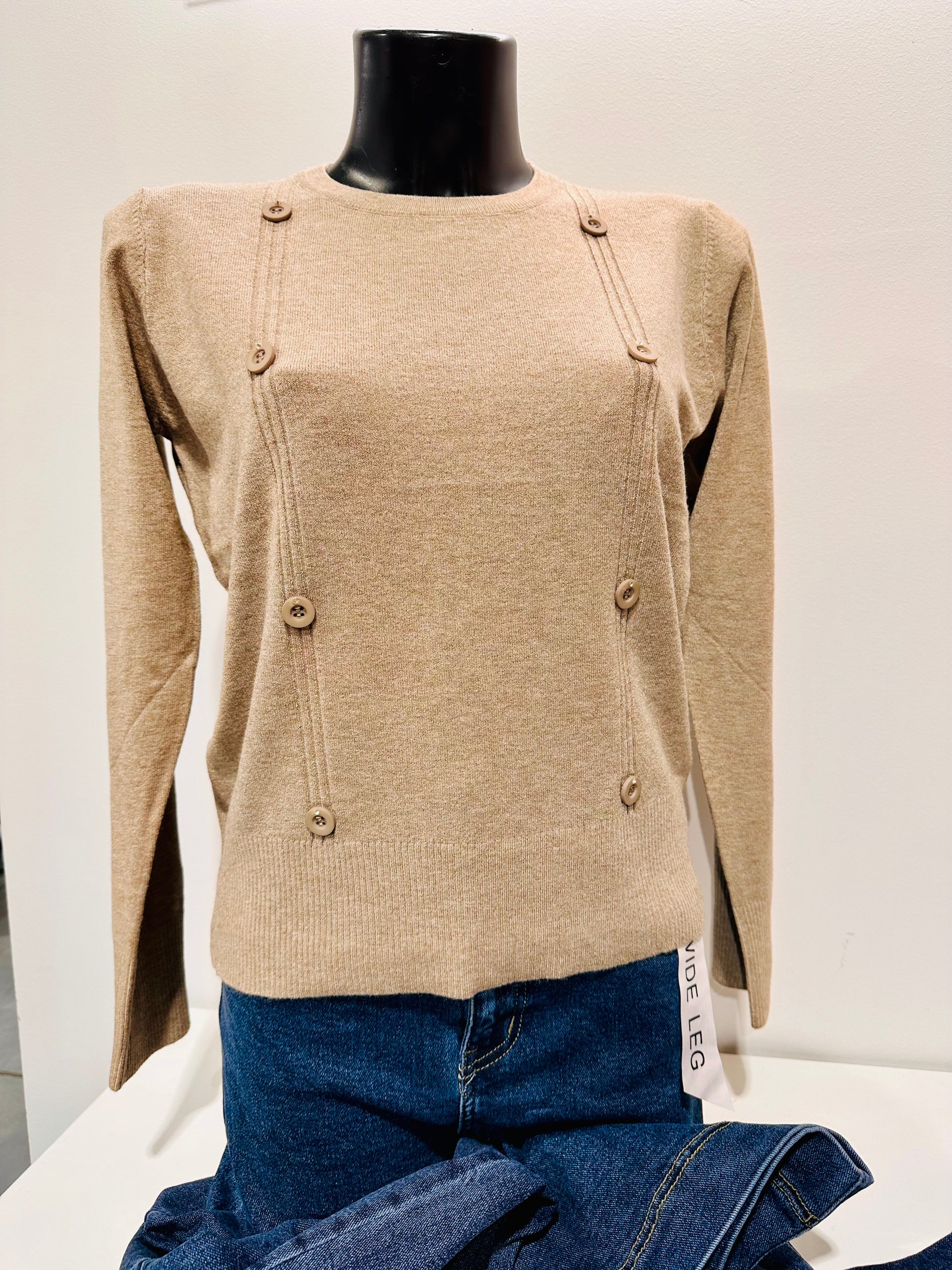 Maglioncino in viscosa con bottoncini cuciti. Vestibilità regolare