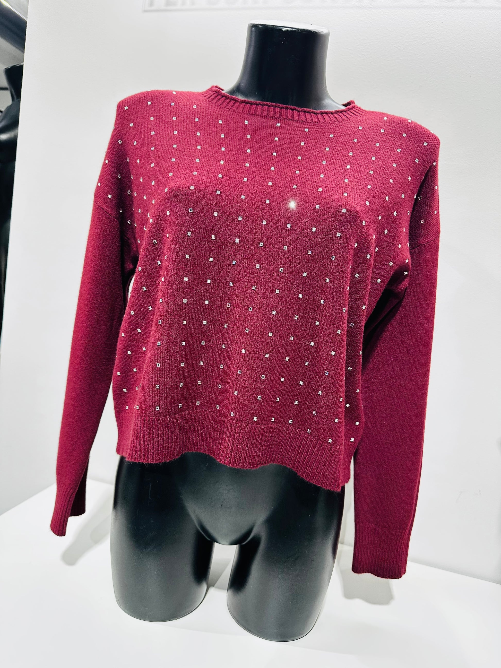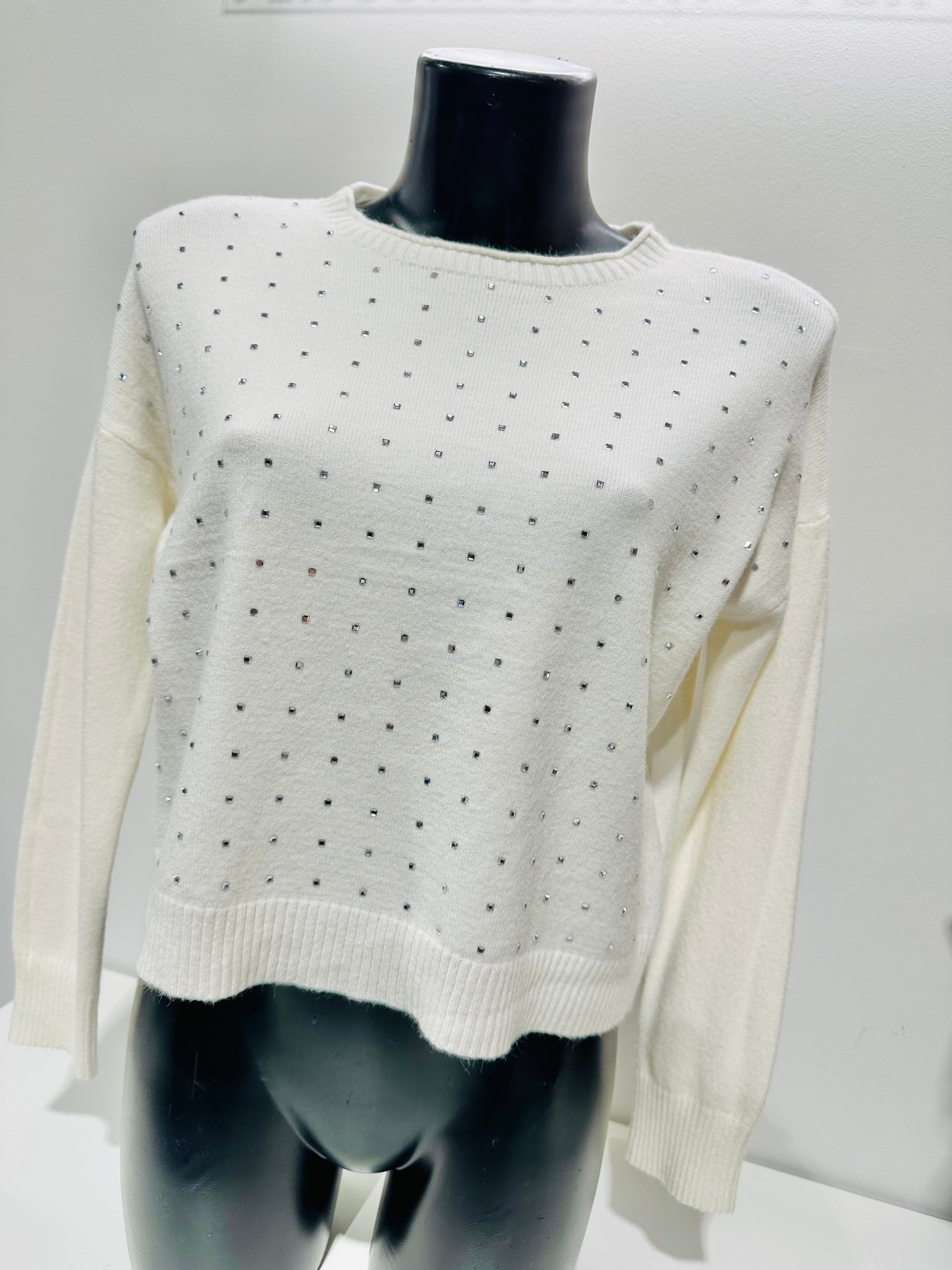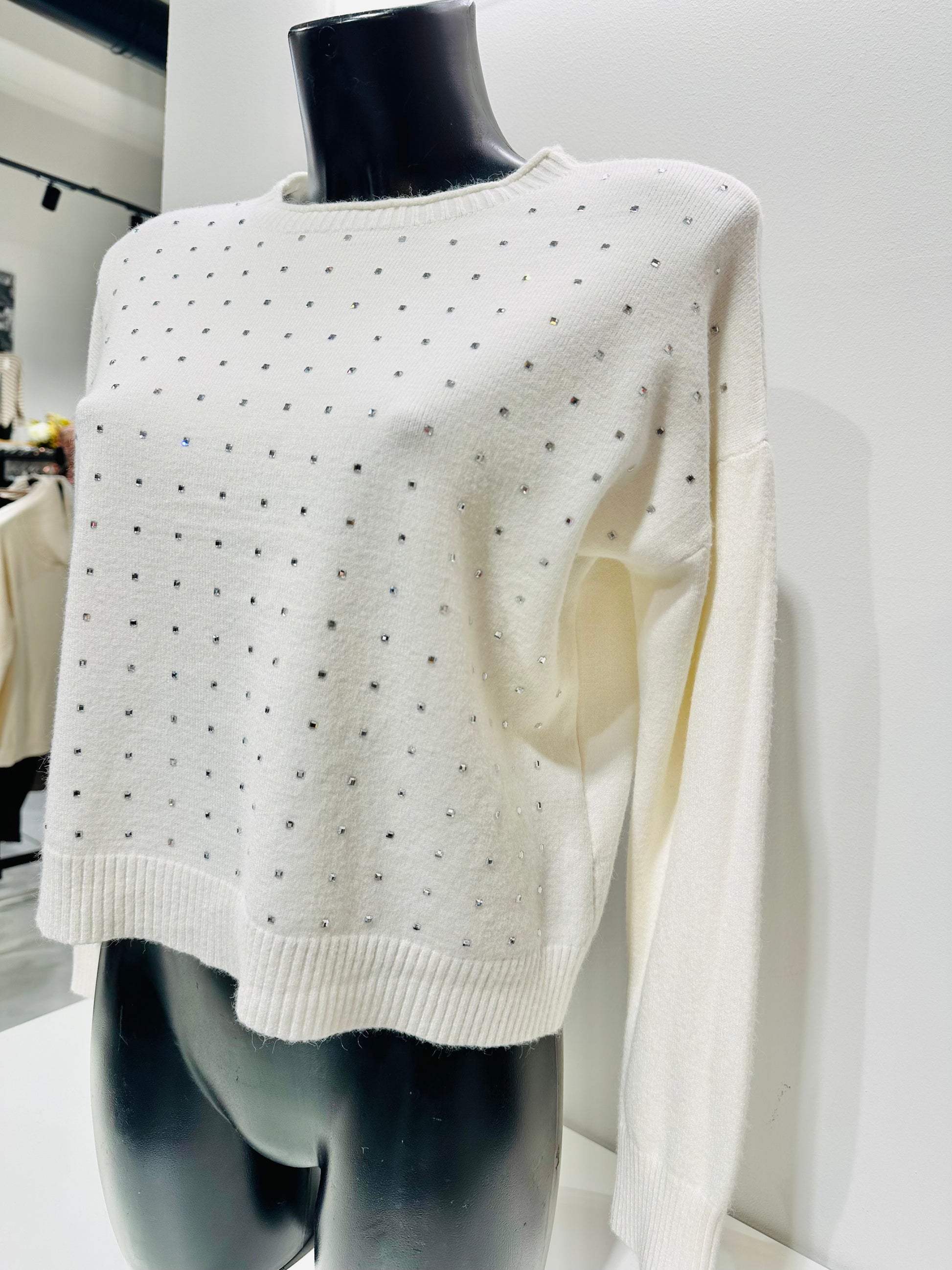Maglioncino crop in calda viscosa con brillantini applicati, vestibilità regolare