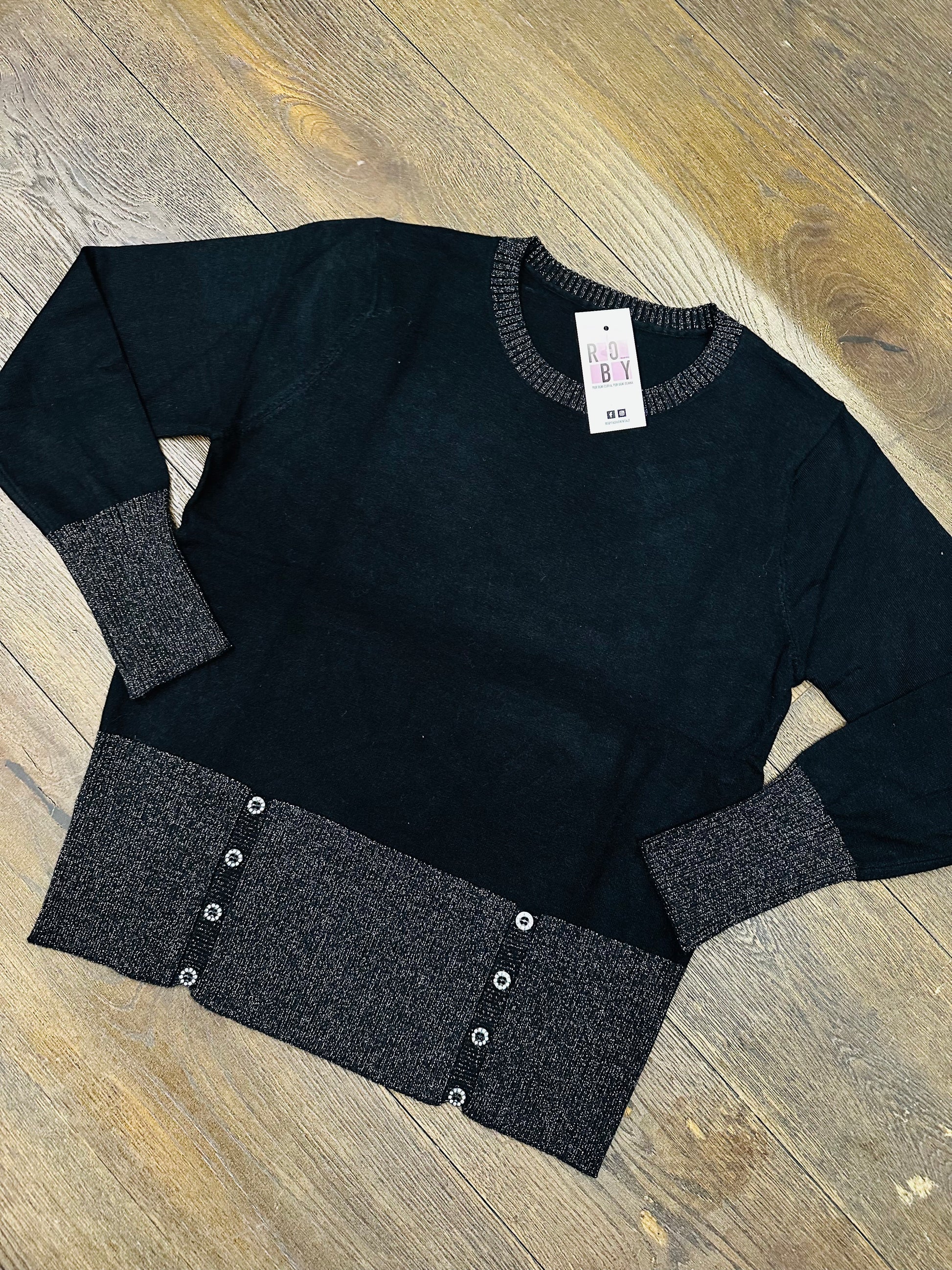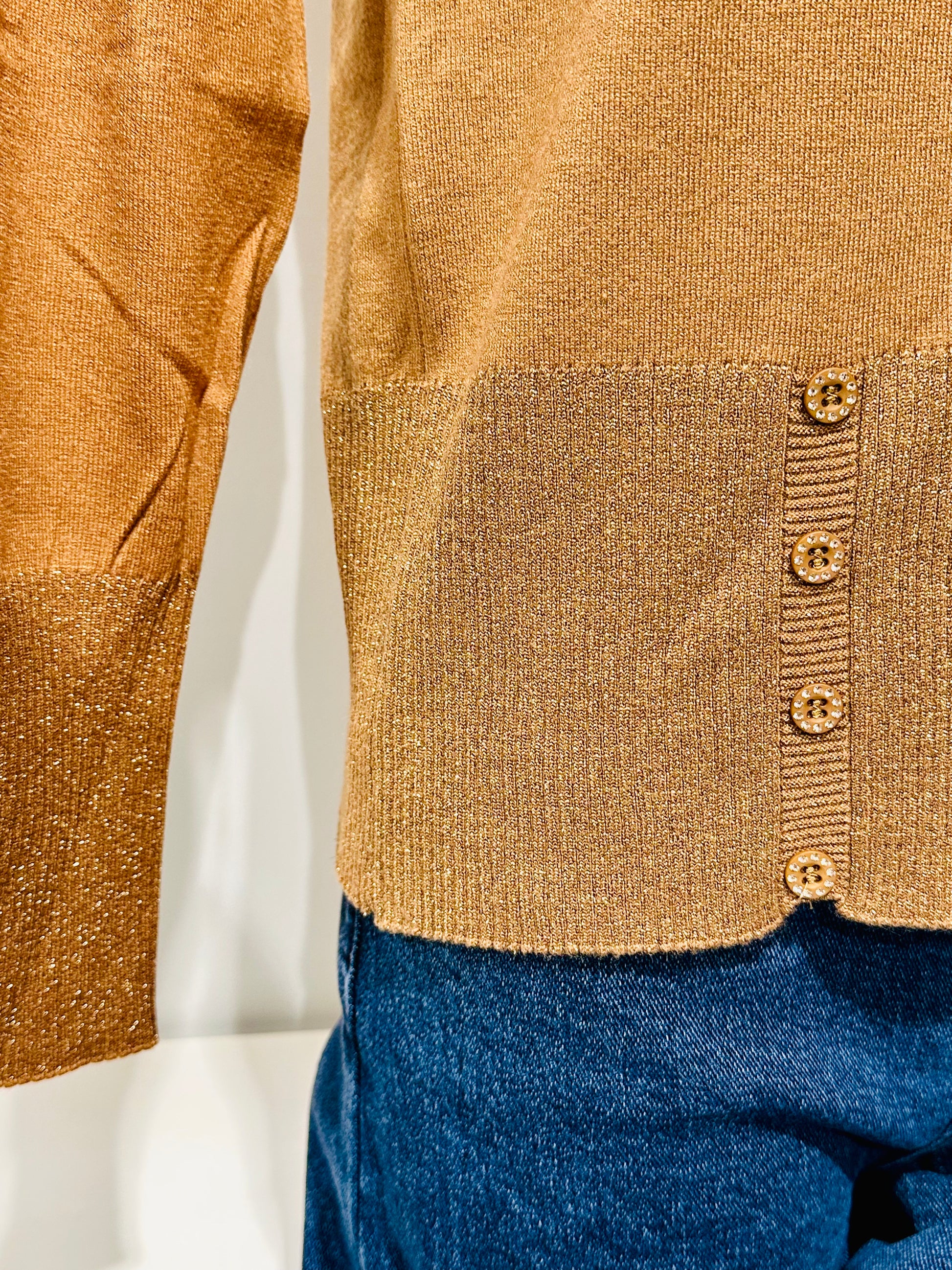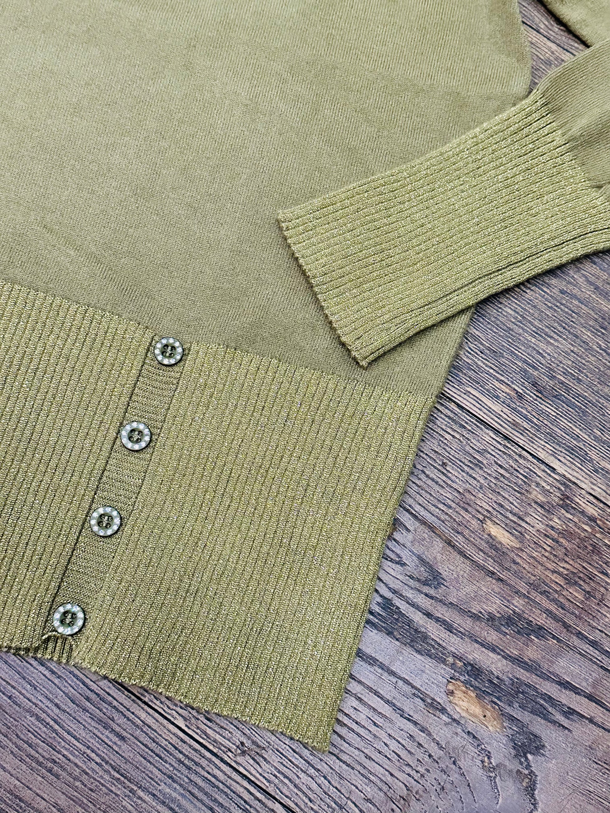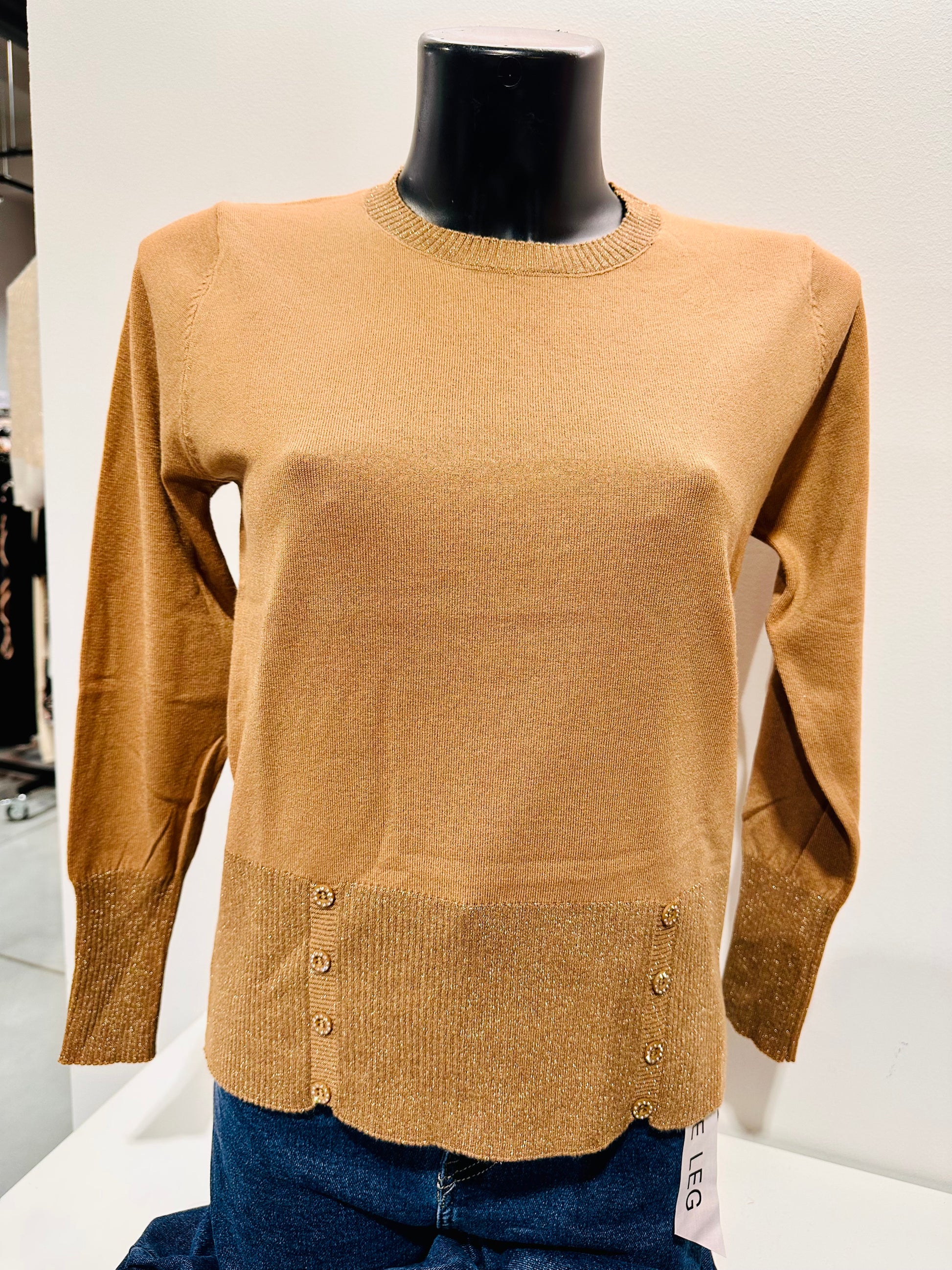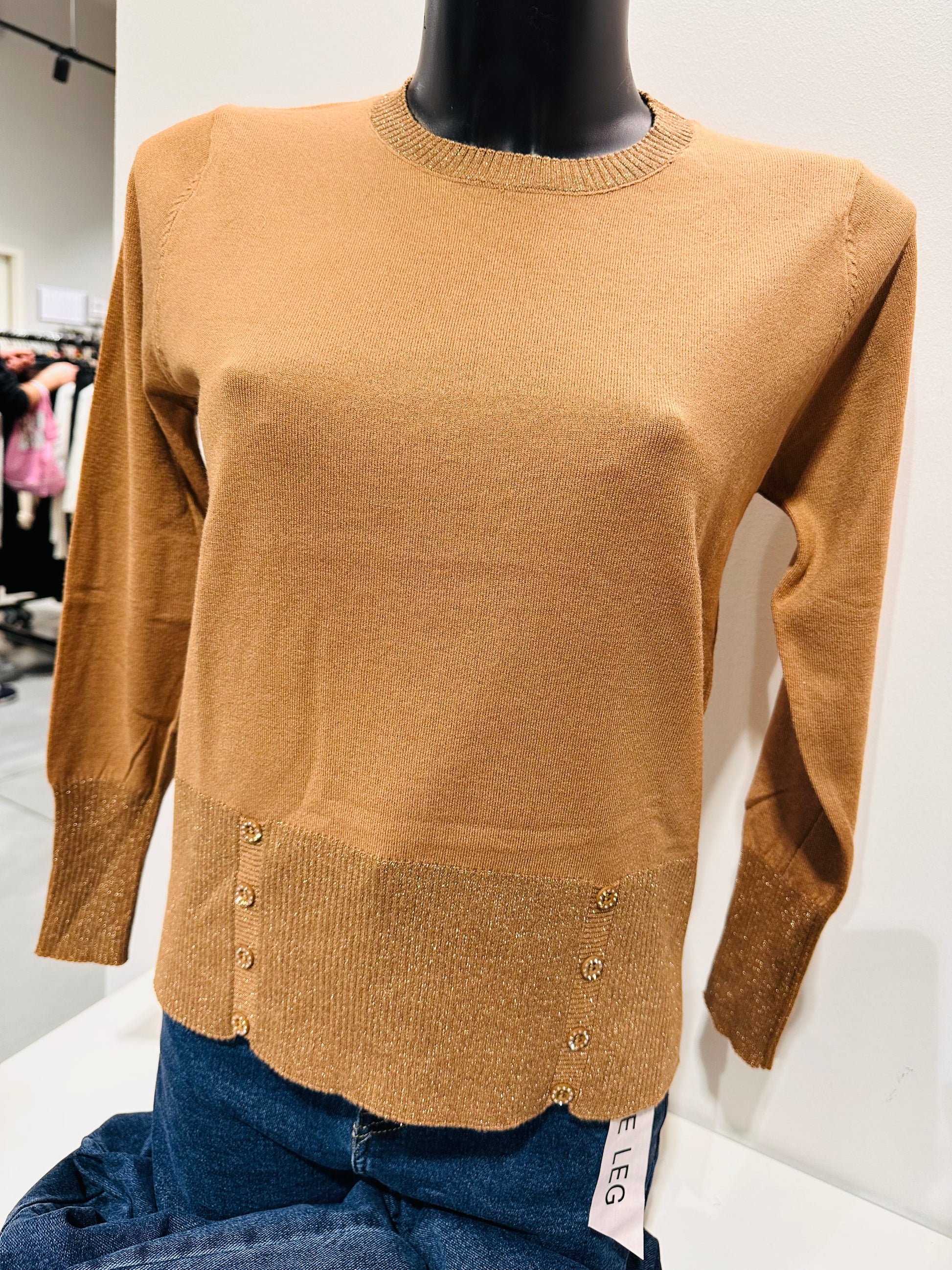 Maglioncino in viscosa, dettagli laminati e bottoncini cuciti. Vestibilità regolare