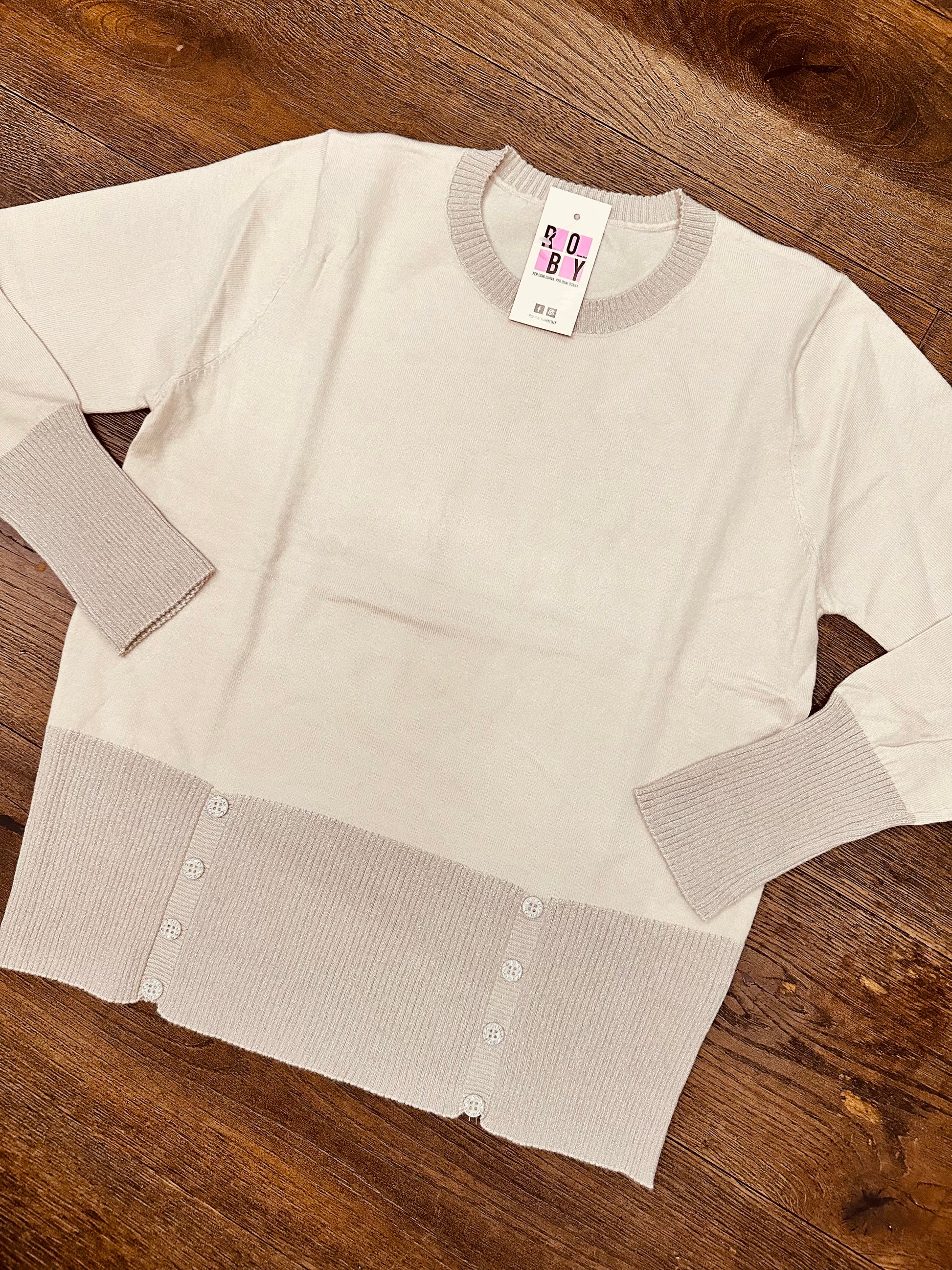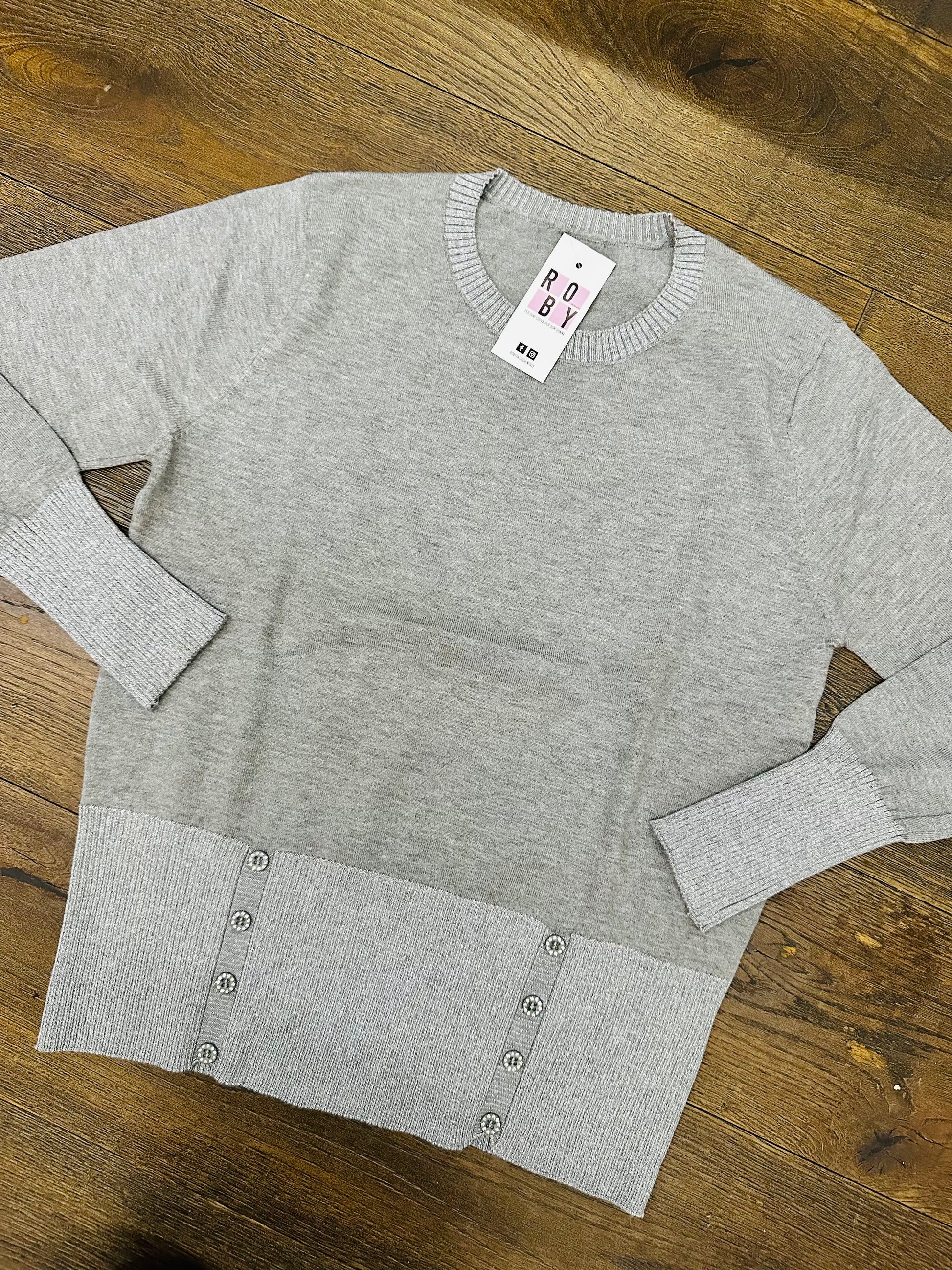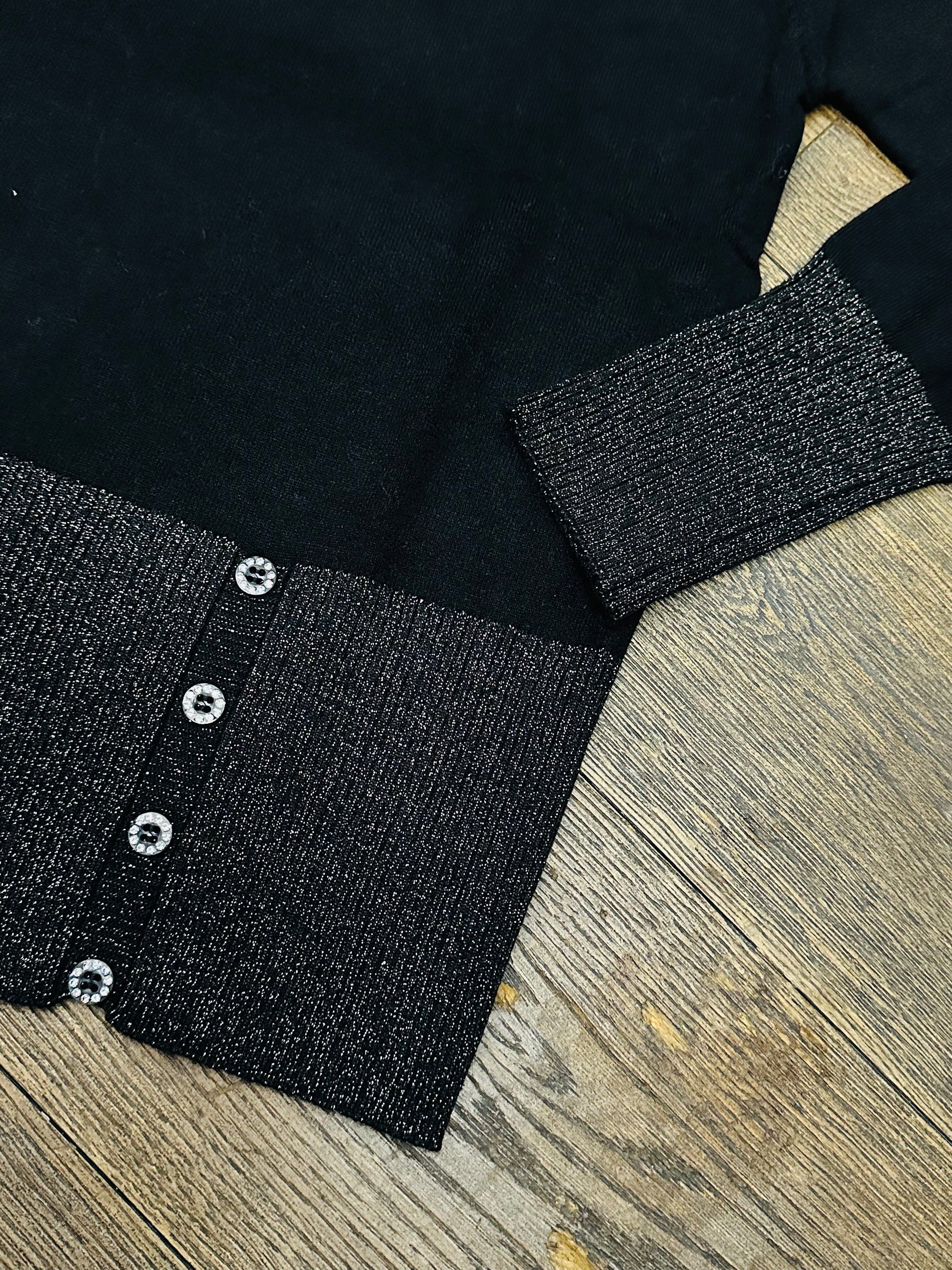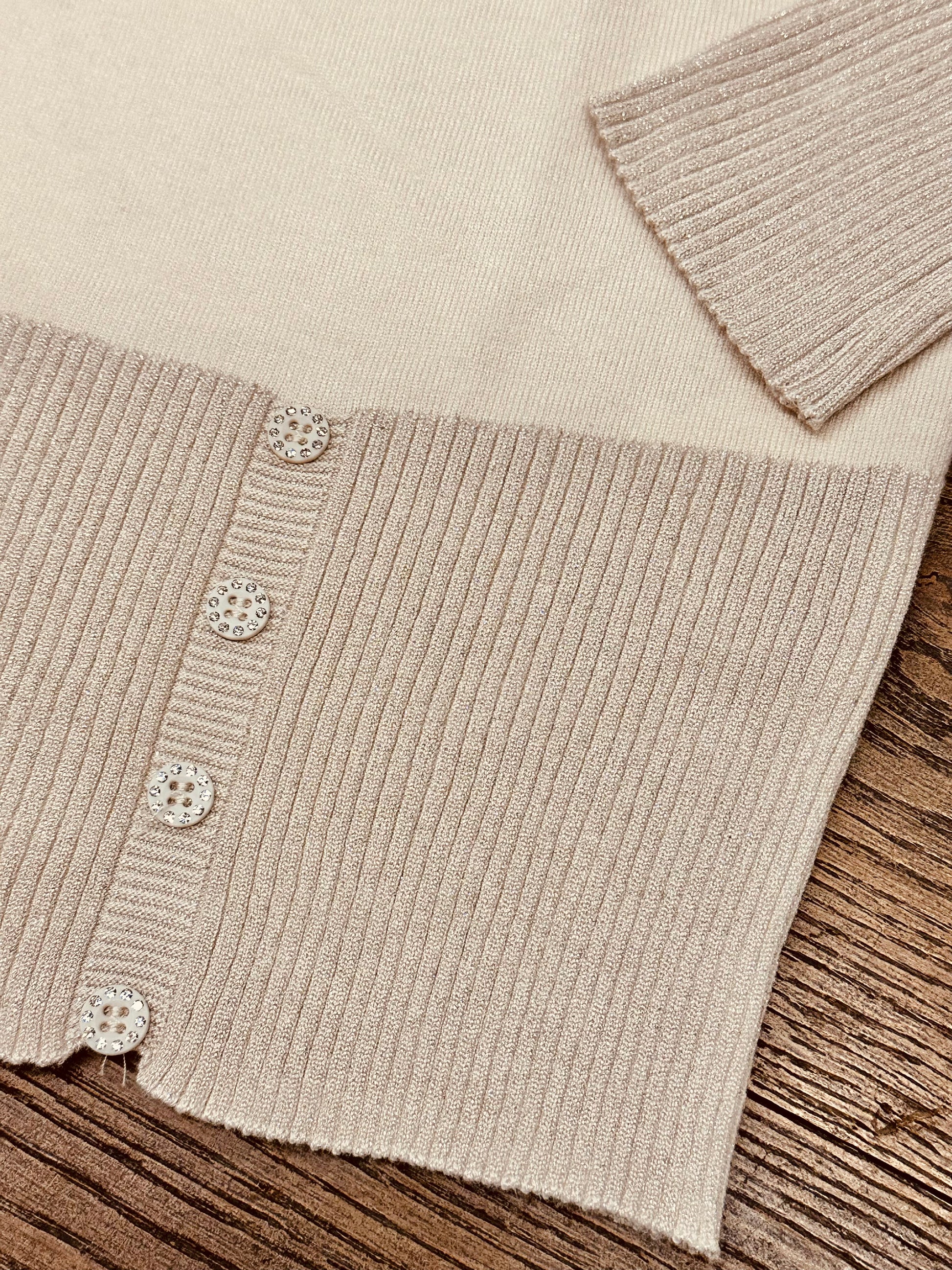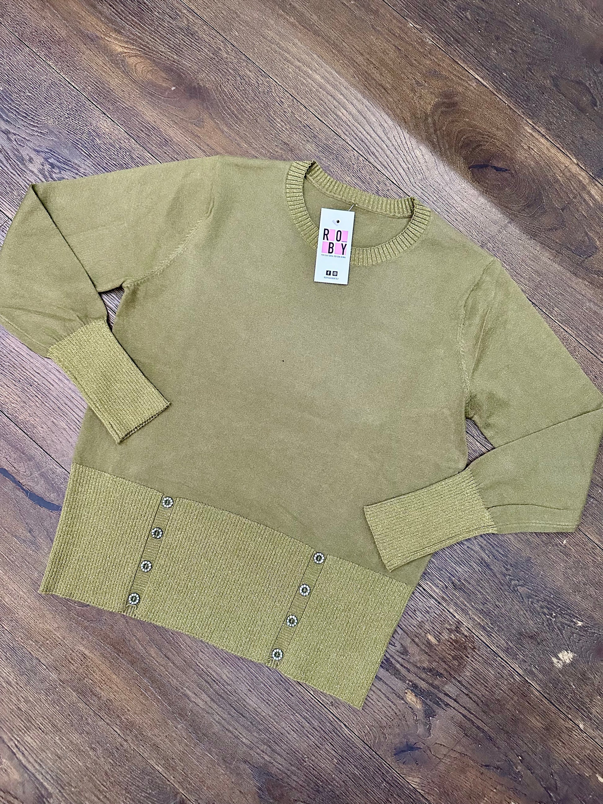 Maglioncino in viscosa, dettagli laminati e bottoncini cuciti. Vestibilità regolare