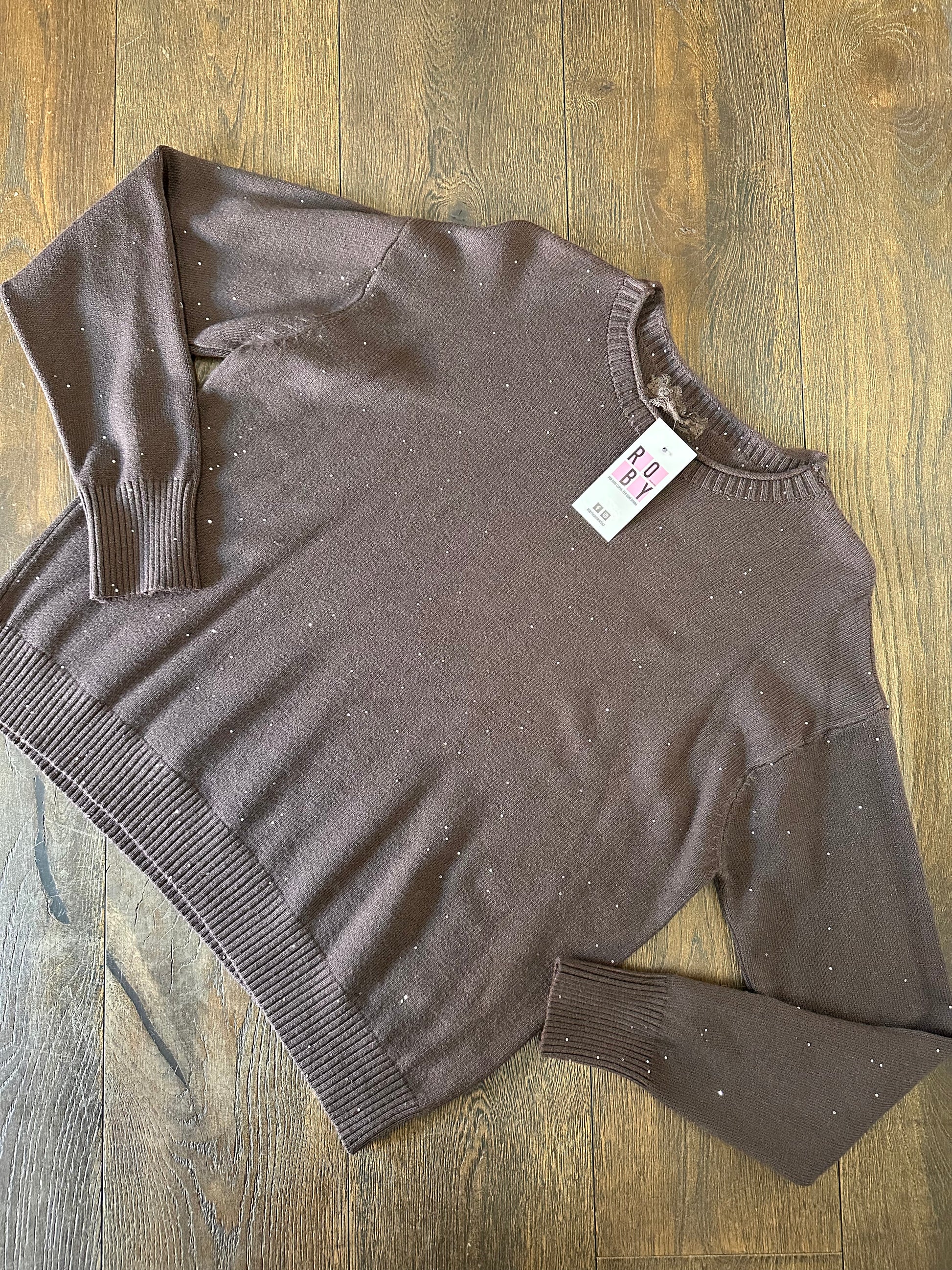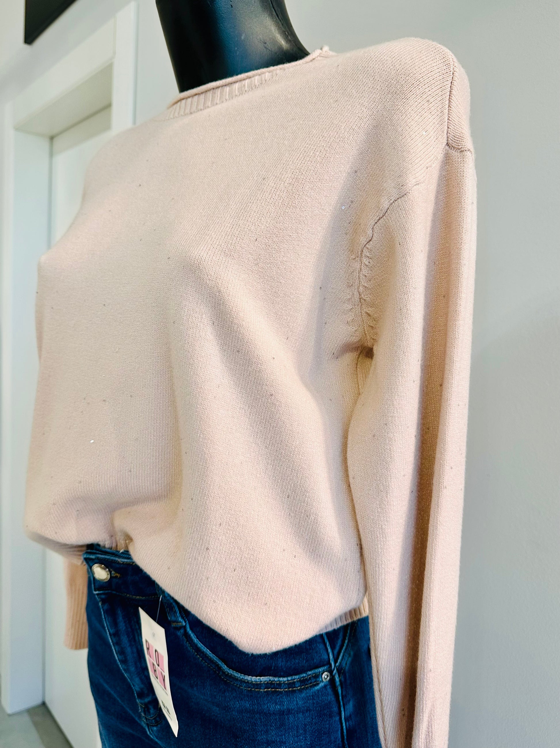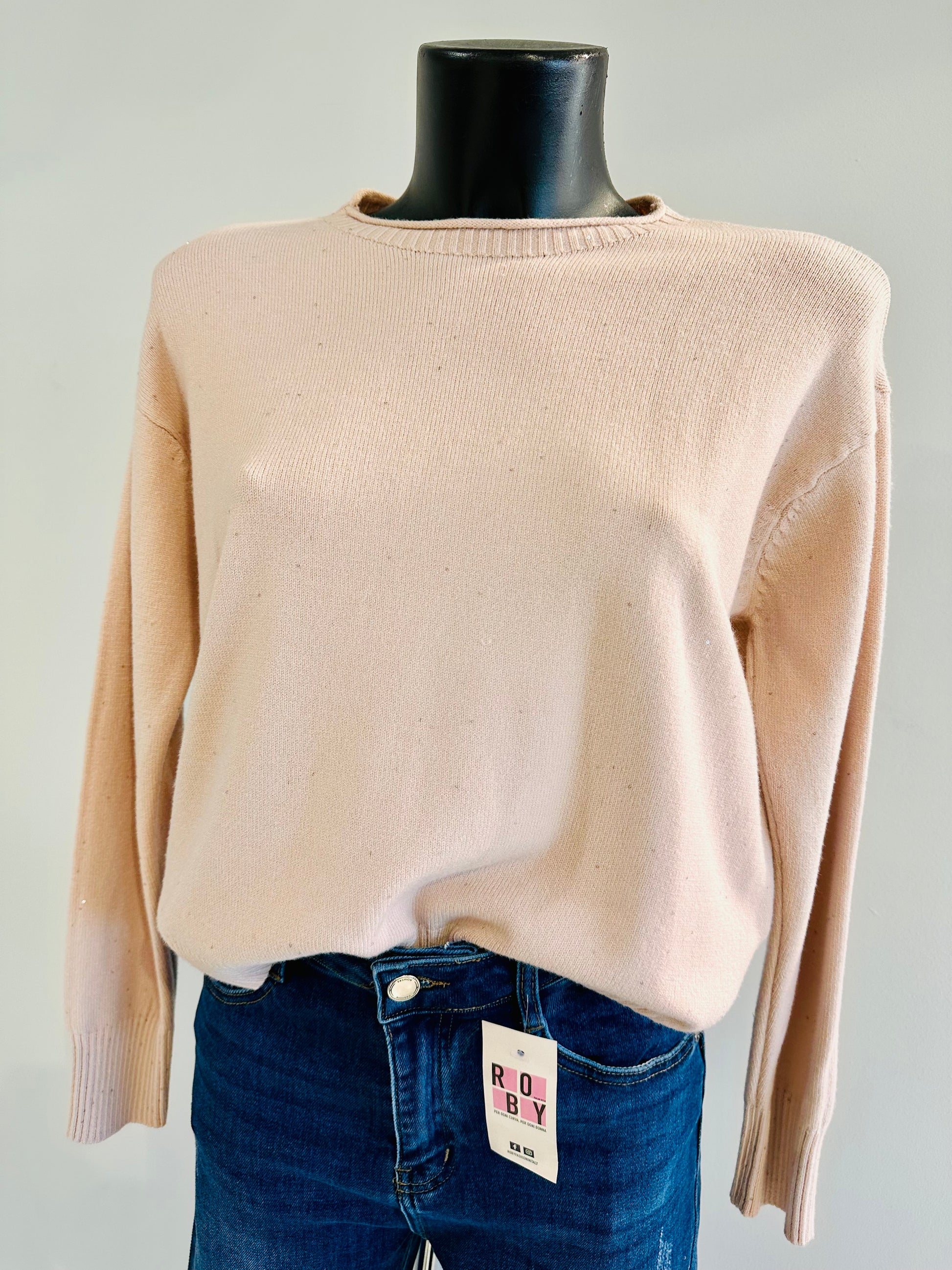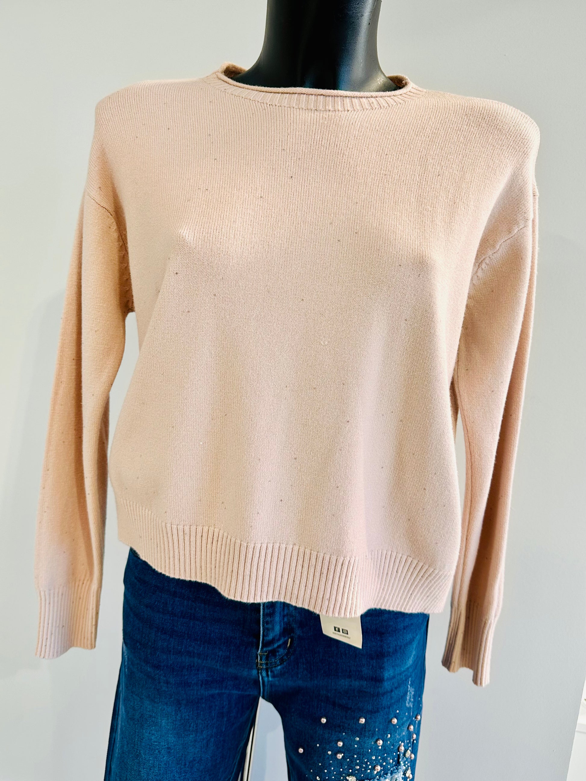 Maglioncino in calda viscosa con paillettes cucite, vestibilità morbida