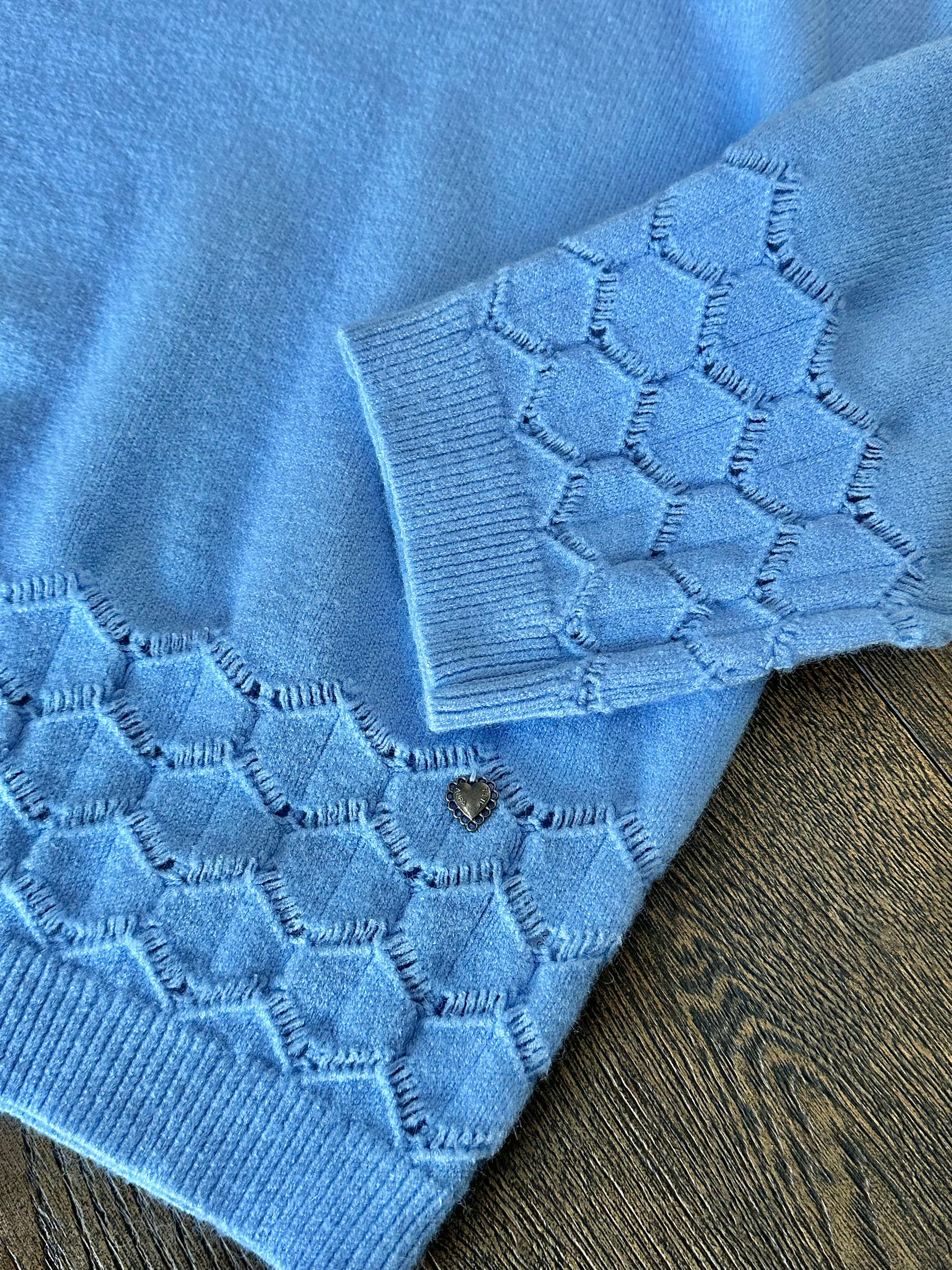 Maglioncino in calda viscosa con maniche 3/4 lunghe, traforato. Vestibilità morbida
