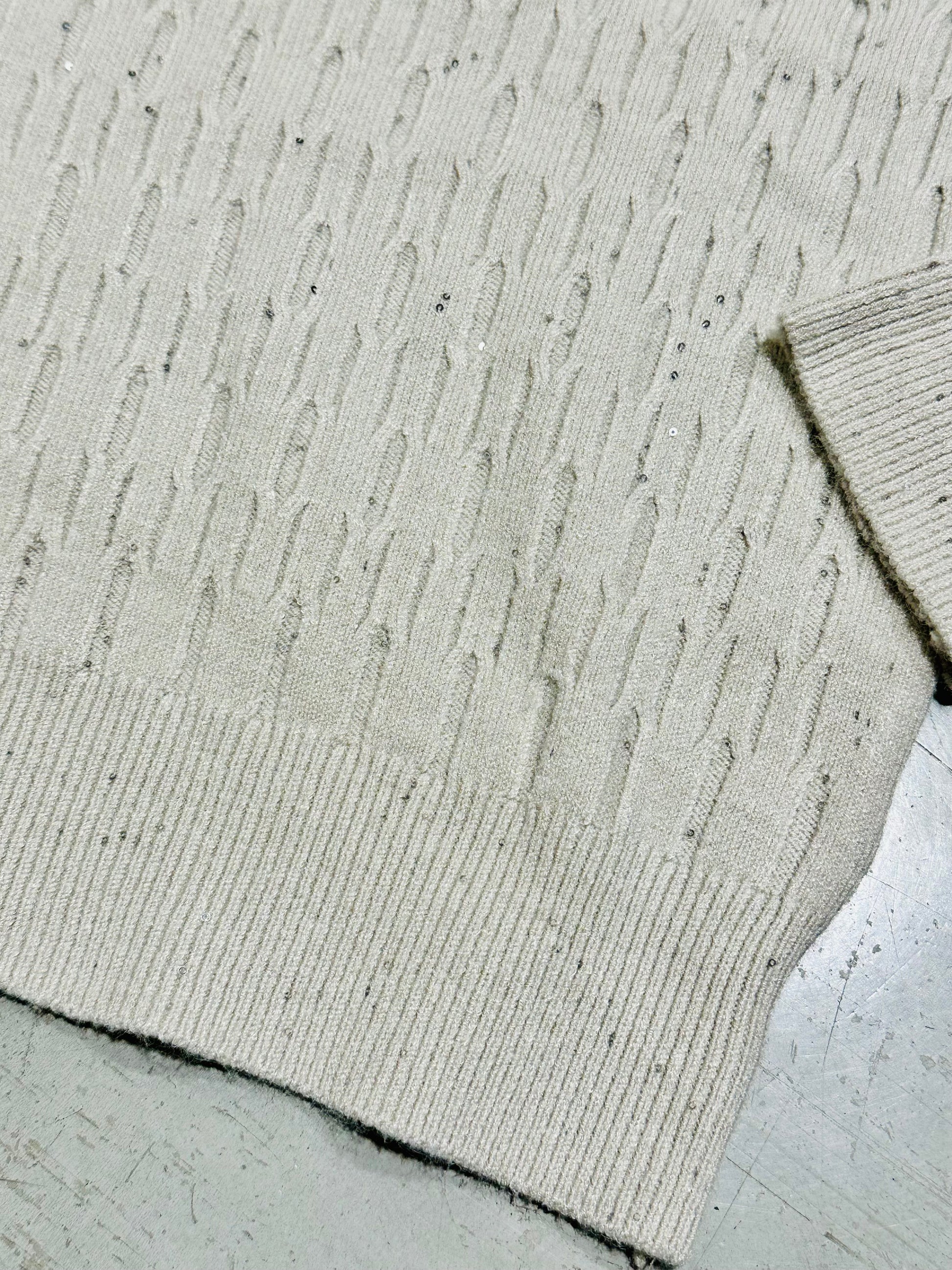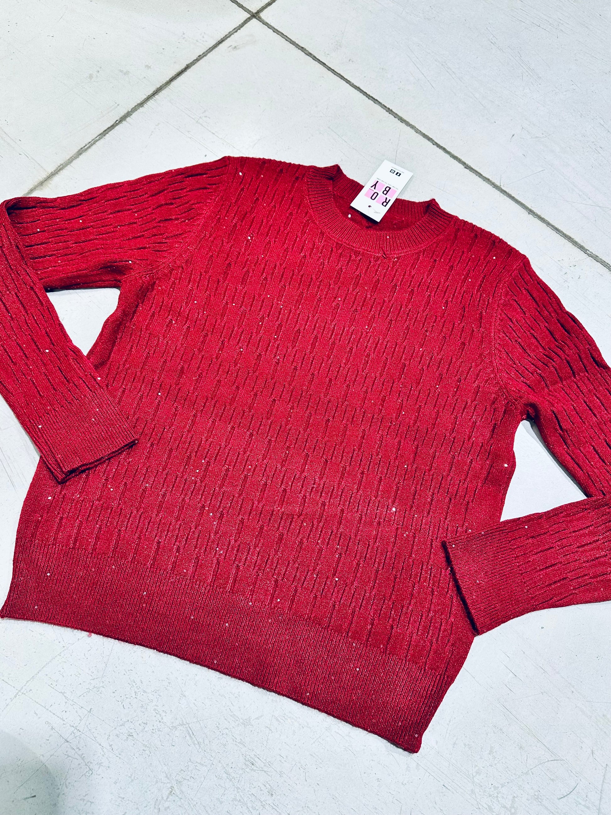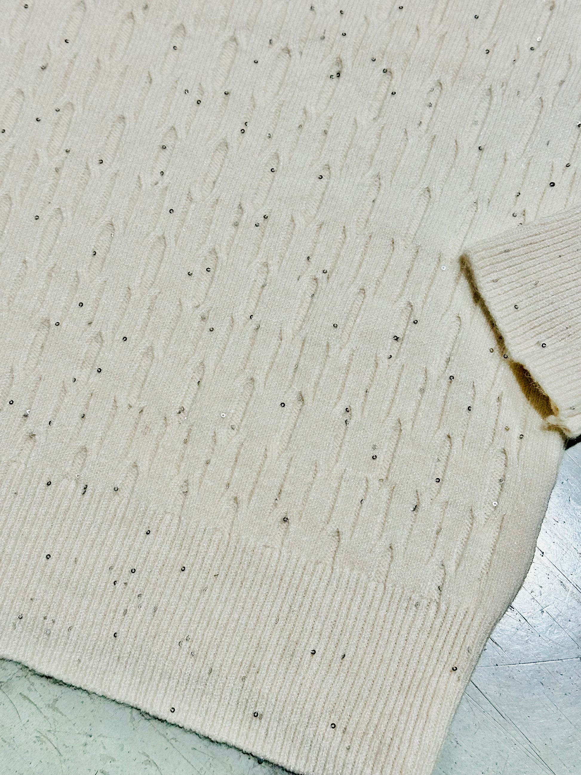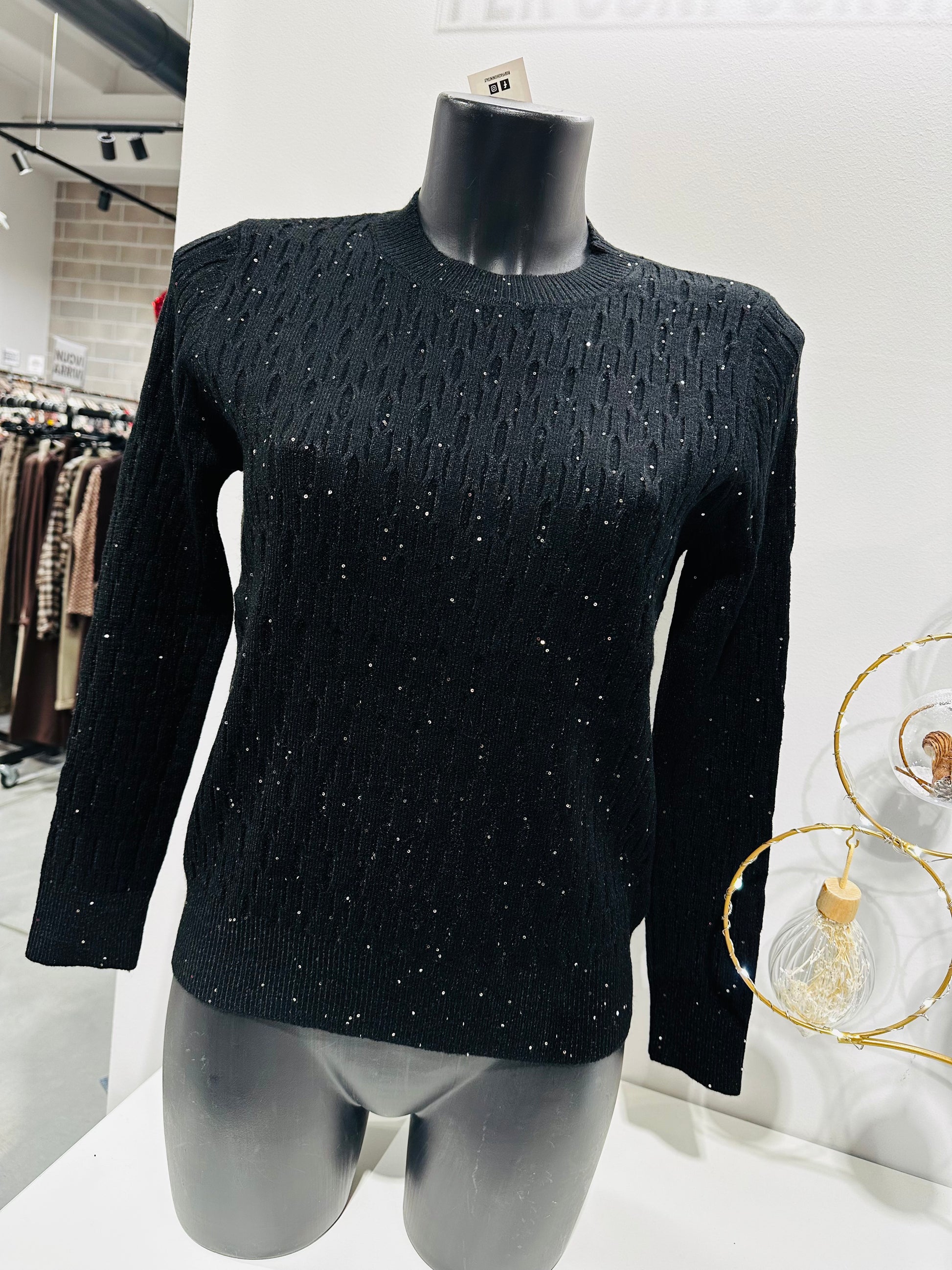 Maglioncino in calda viscosa con paillettes cucite e treccine. Vestibilità regolare