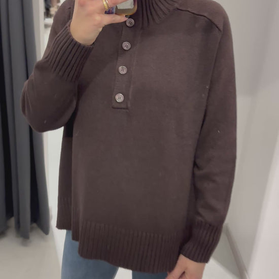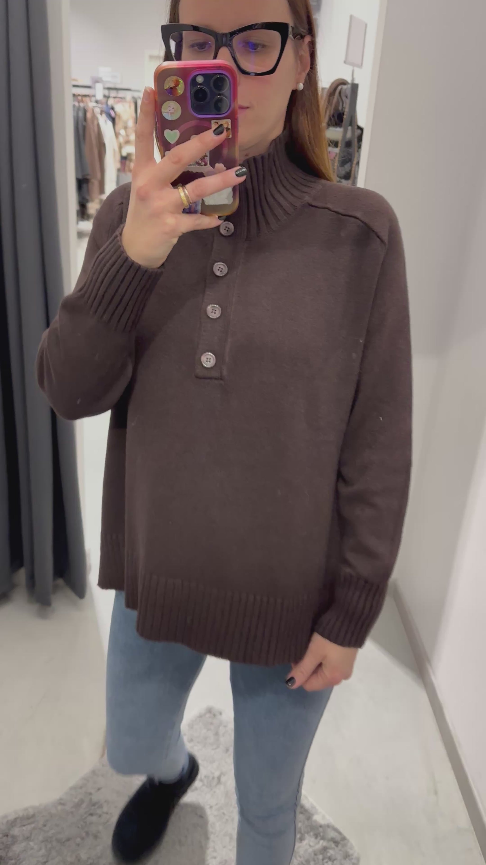 Maglione in calda viscosa con collo lupetto. Spacchetti laterali, vestibilità morbida
