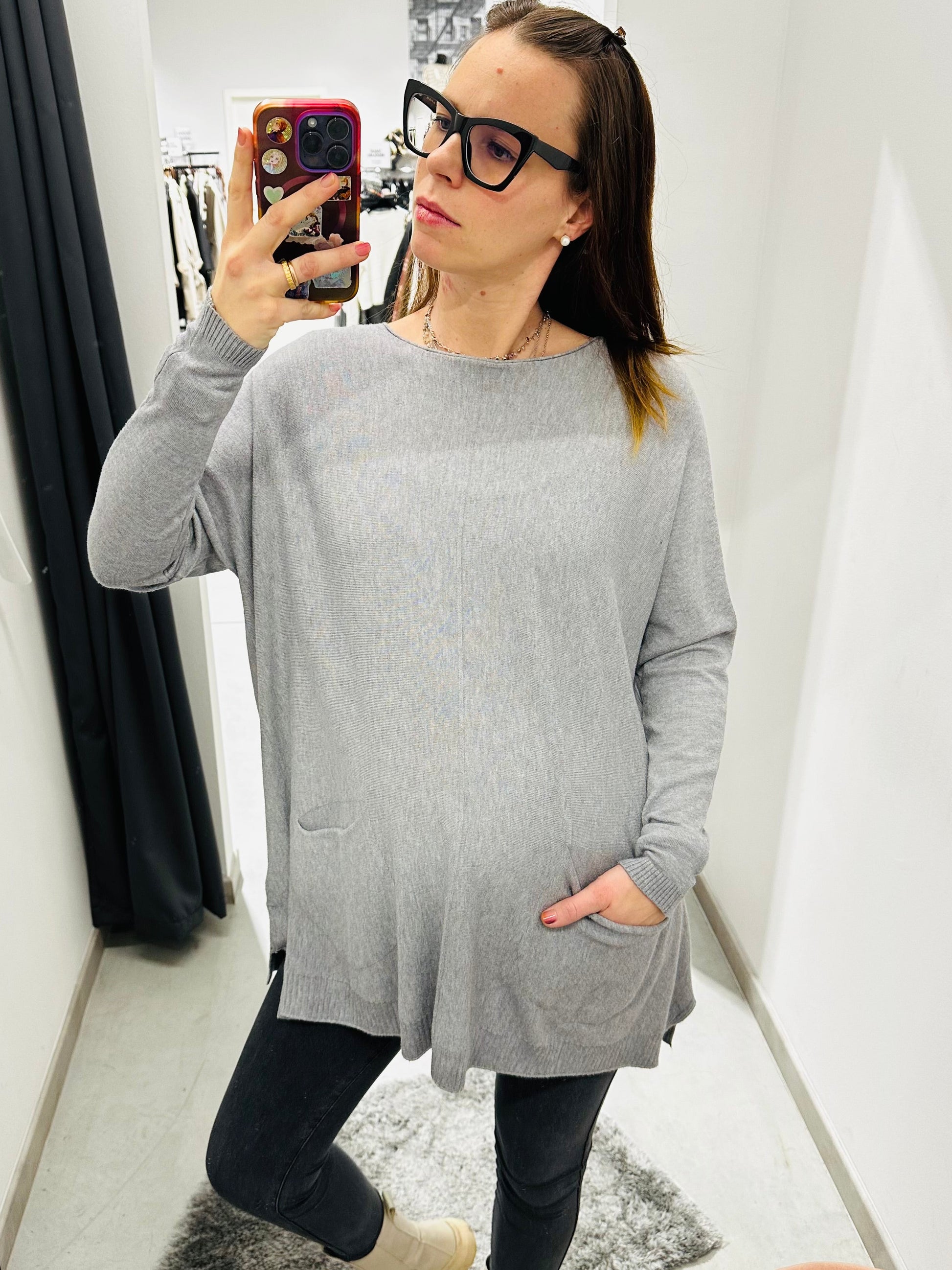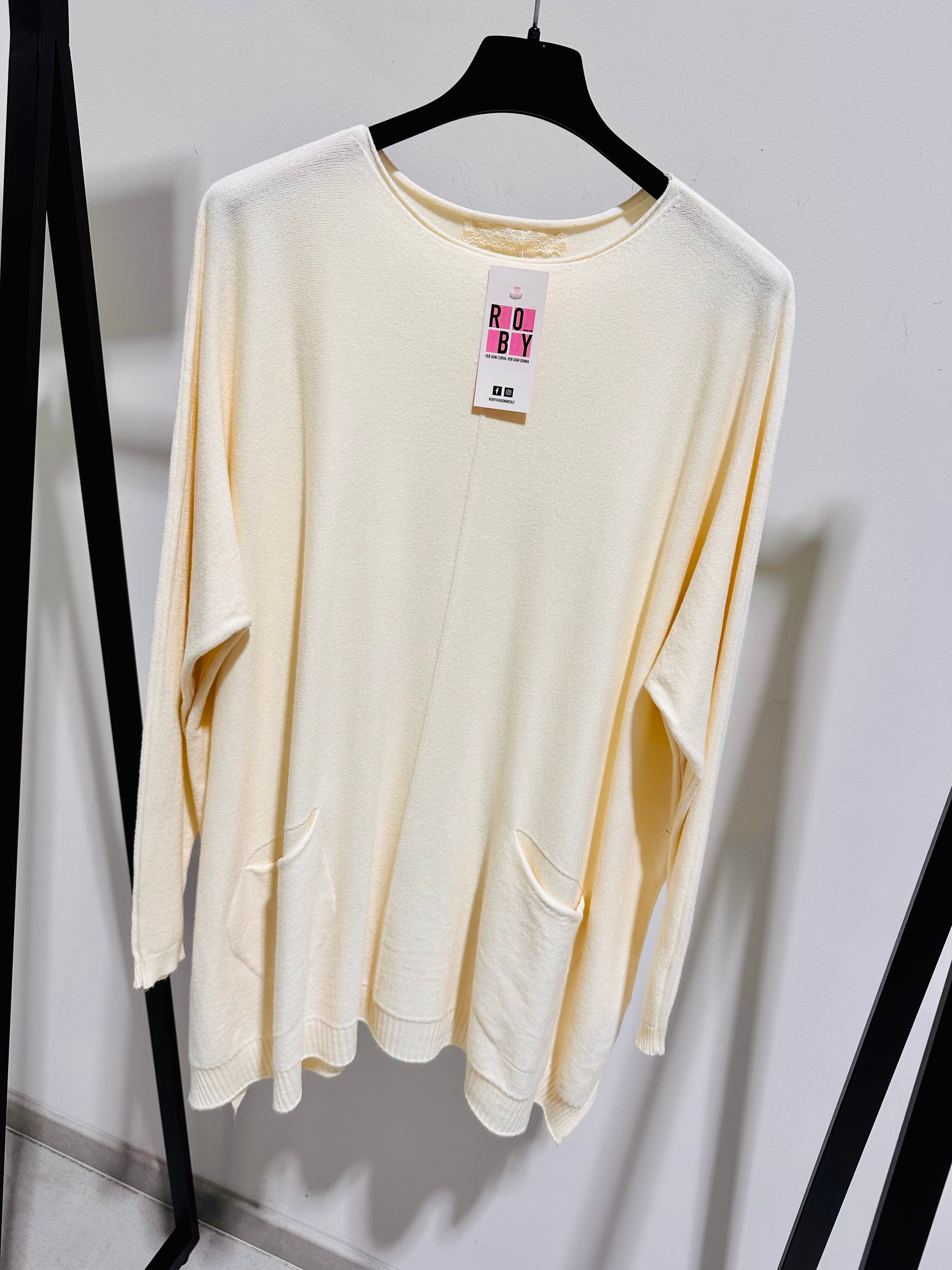 Maxi maglia in viscosa, con taschine. Vestibilità morbida