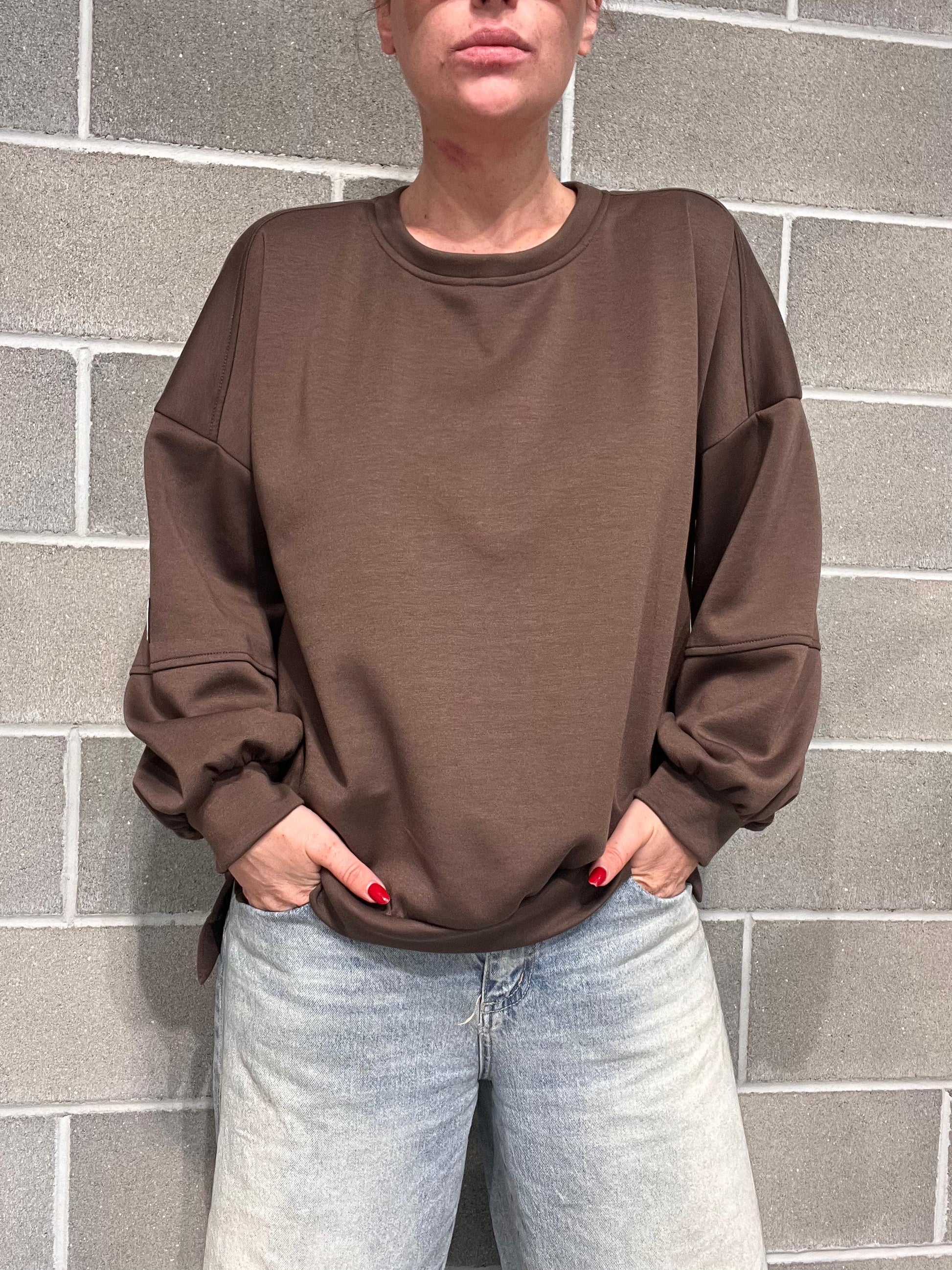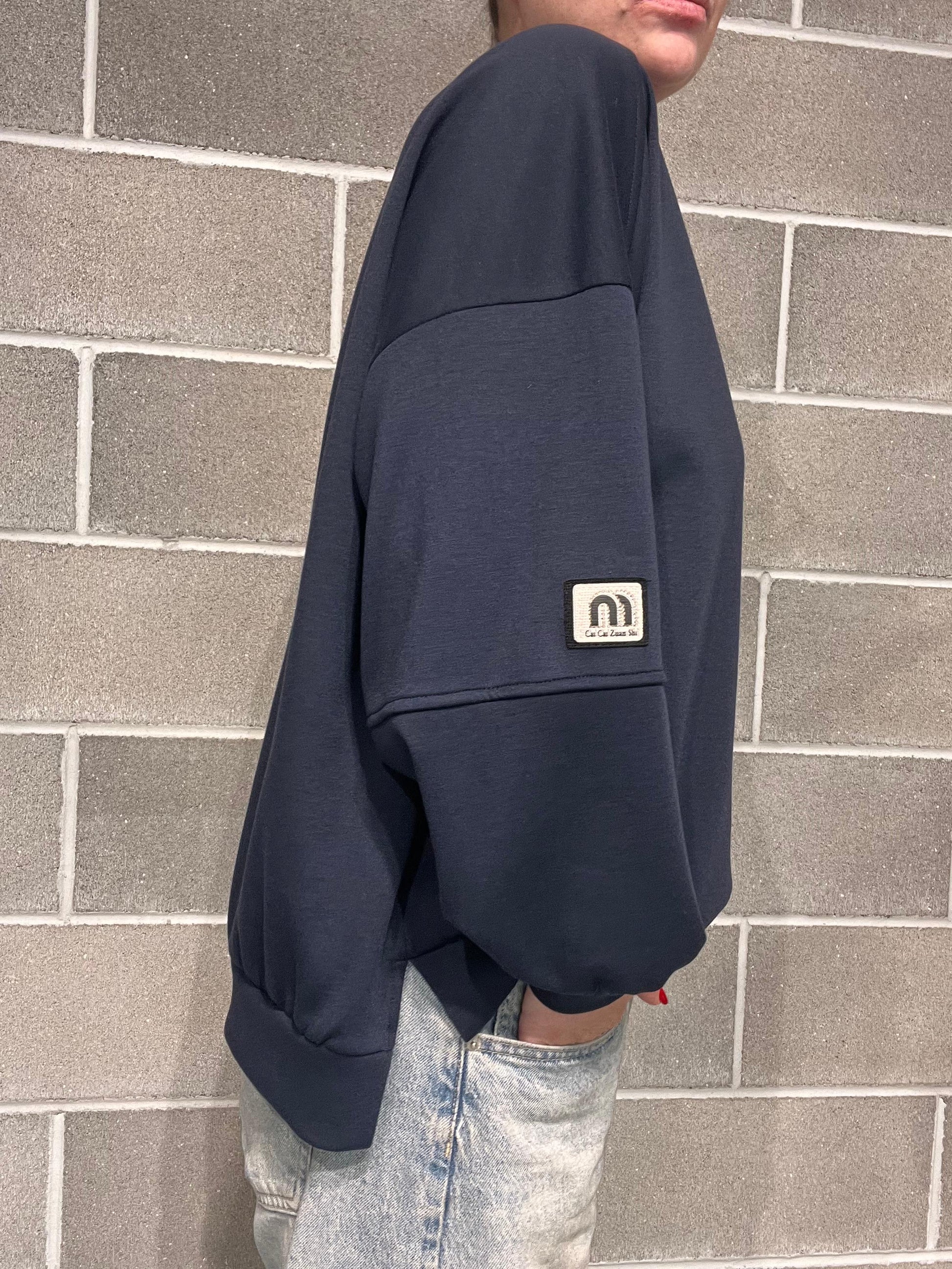 Felpa oversize in viscosa, con targhetta sulla manica e spacchetti laterali. Vestibilità over
